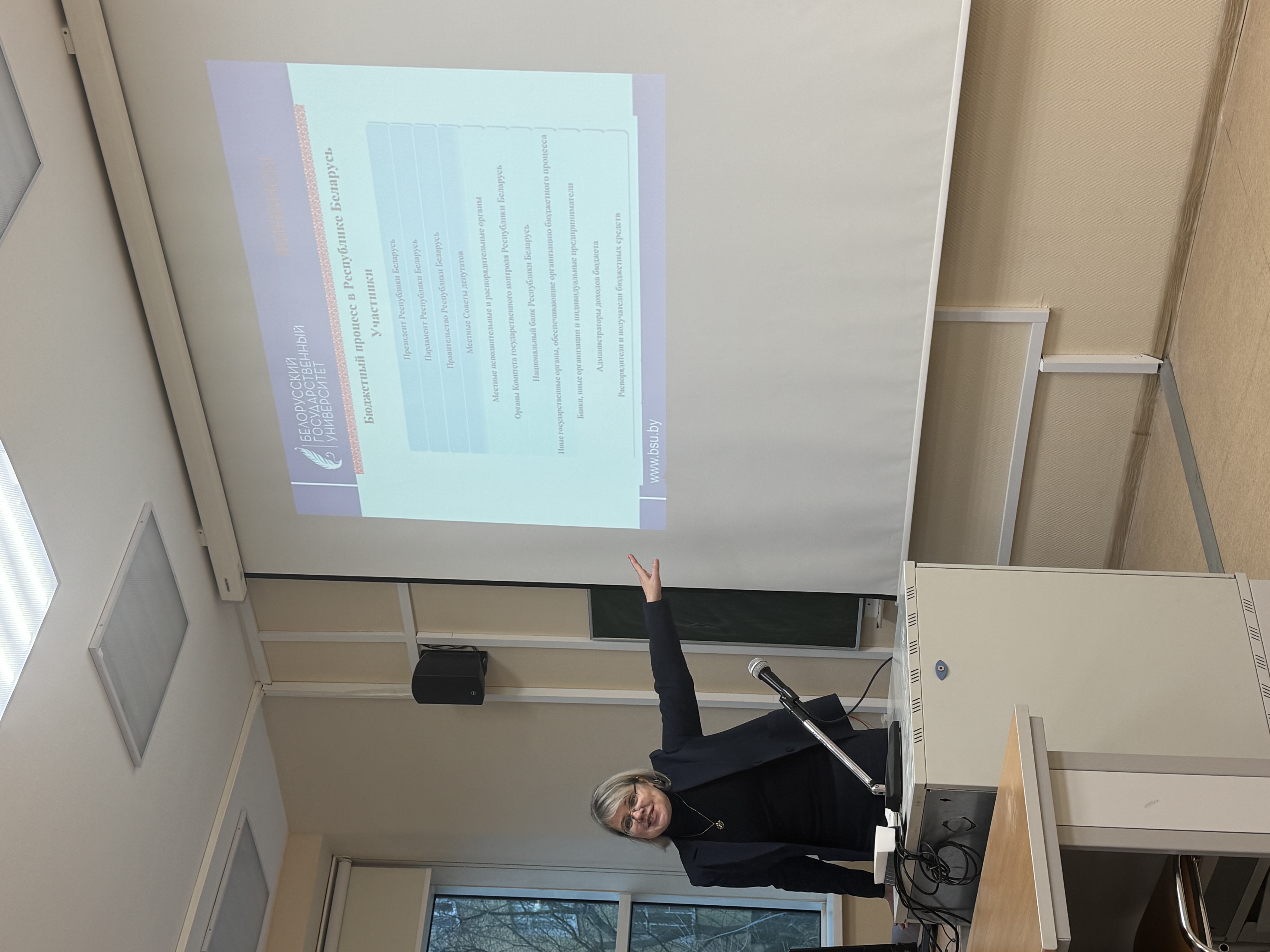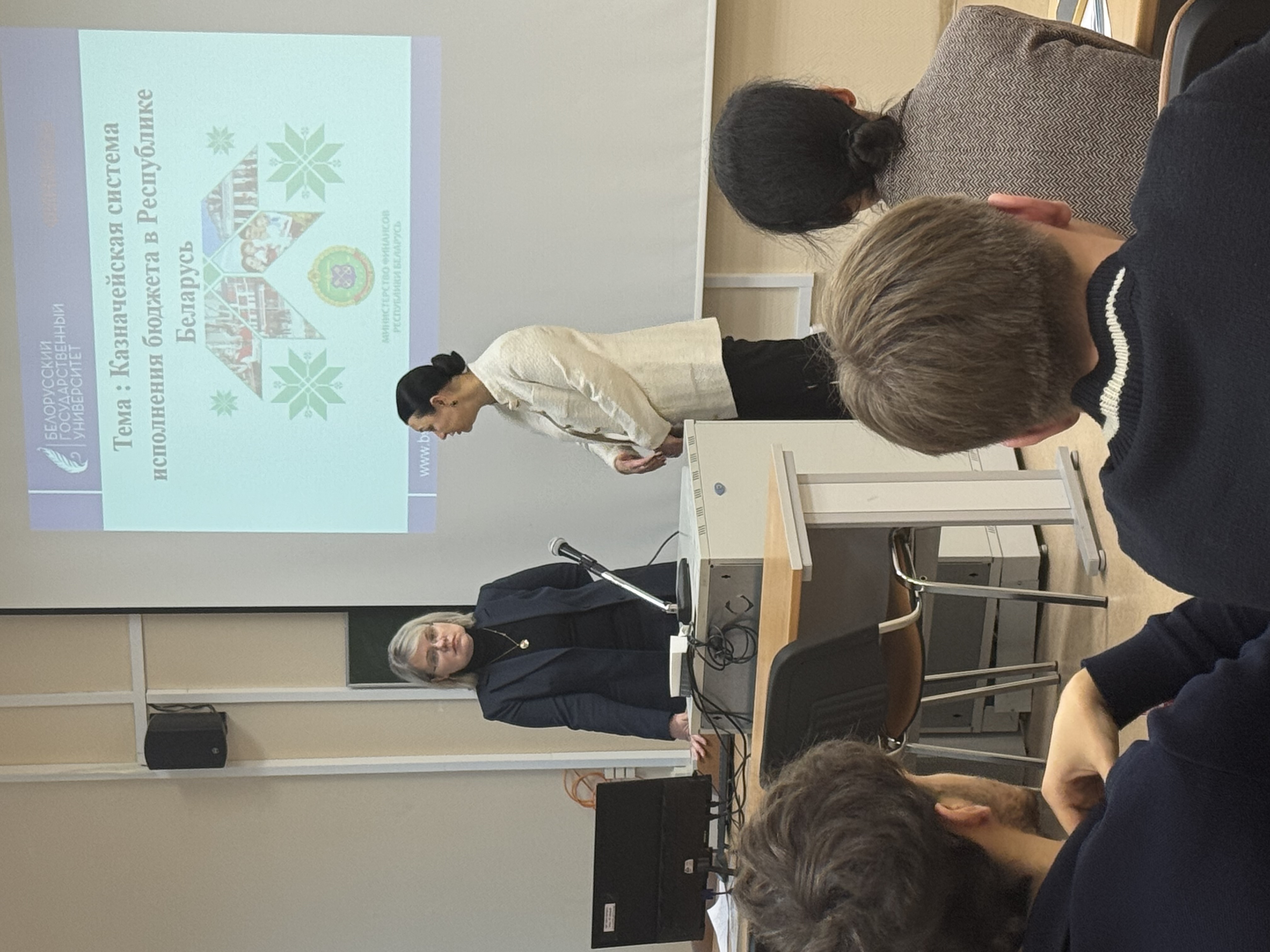 В рамках программы «Приглашенный профессор» 03.12.25 года заведующий кафедрой финансового контроля, анализа и аудита Белорусского государственного университета, к.э.н., доцент Машевская О.В. прочитала лекцию студентам 4 курса на тему «Казначейская система исполнения бюджета в Республике Беларусь». На лекции с приветственным словом выступила зам. заведующего кафедрой, д.э.н., профессор Федченко Е.А., которая рассказала о перспективах международного сотрудничества с Белорусским государственным университетом.