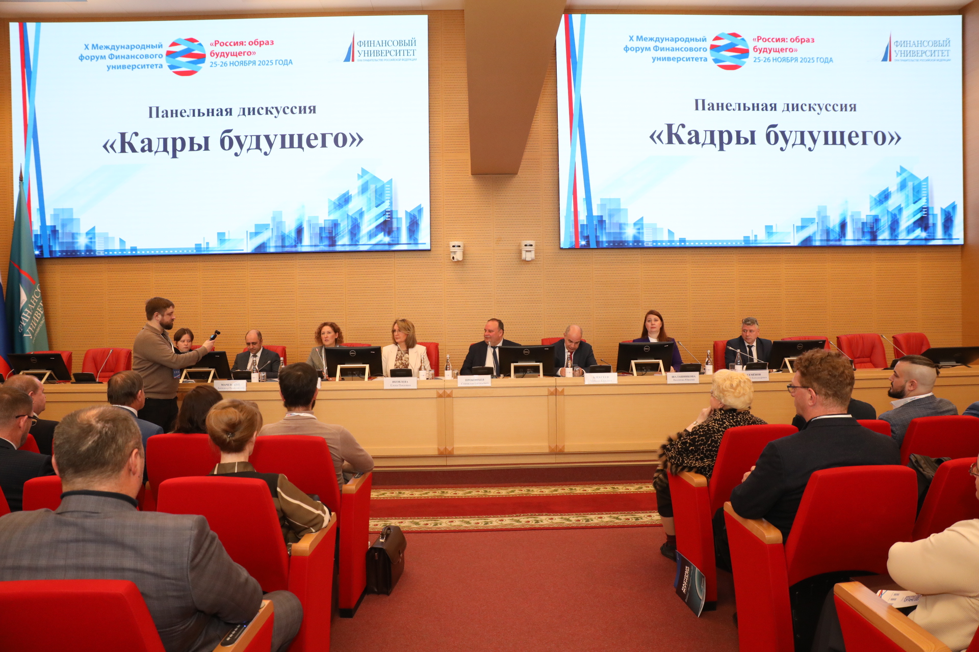 25 ноября 2025 года в Финансовом университете при Правительстве РФ состоялась панельная дискуссия на одну из самых актуальных тем для образовательного сообщества — «Кадры будущего». Мероприятие собрало на одной площадке ключевых игроков, формирующих повестку в сфере образования и финансов: представителей государственных органов, руководства университета и топ-менеджеров крупнейших компаний.