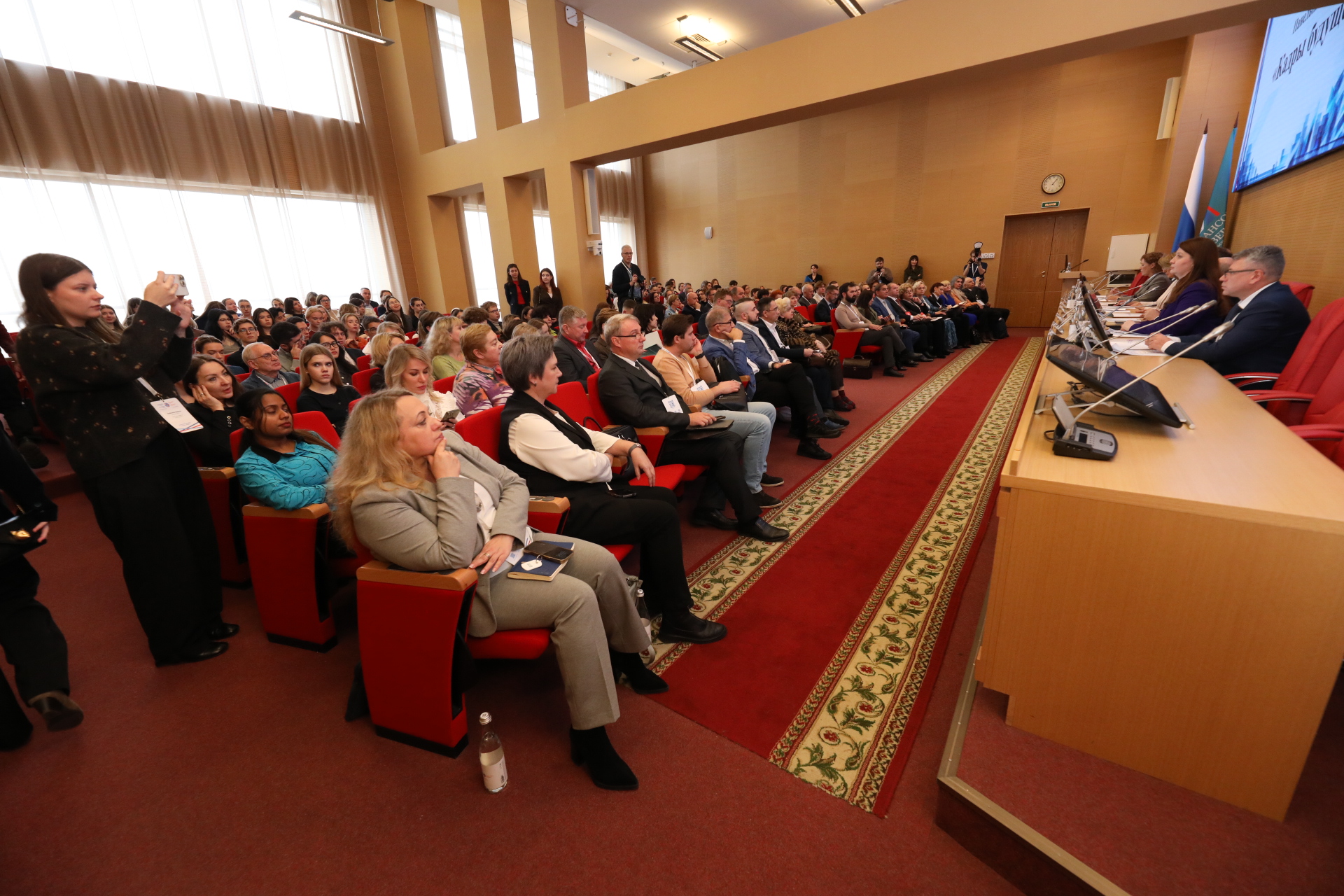 Особой гордостью для кафедры «Финансовые технологии» стало то, что в качестве полноправного спикера, наряду с министрами и ректорами, выступила наша студентка, Мария Хомякова (группа ФТЦЭ24-1м). Мария представила взгляд нового поколения на вызовы современного образования.