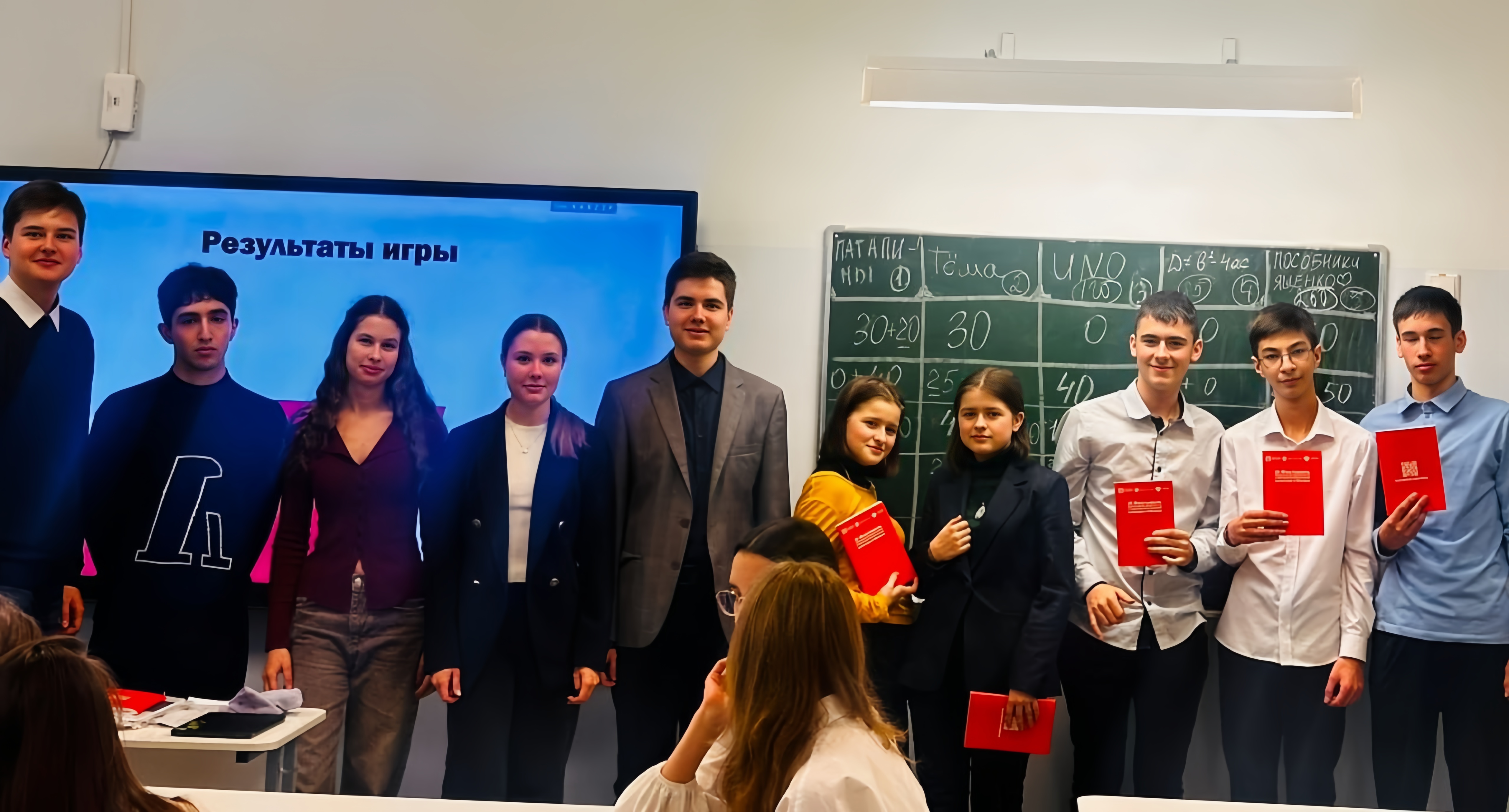 21 ноября 2025 года студенты 1 курса Финансового факультета учебной группы ФФ25-13 провели увлекательную деловую игру «Бюджет для побед» для учащихся 9 классов школы №1252 имени Сервантеса в рамках педагогического подхода "Обучение служением".
