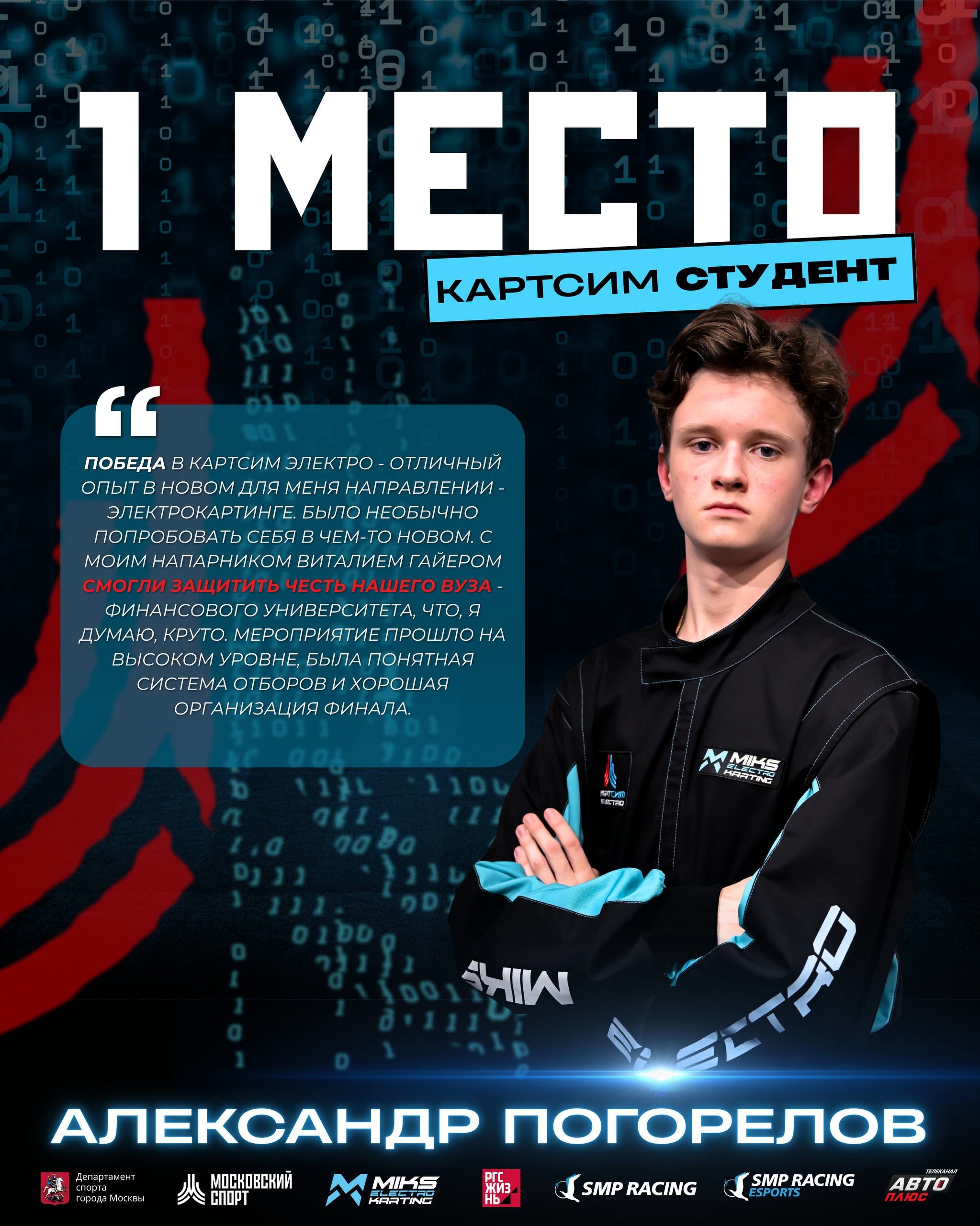 Александр Погорелов подчеркнул важность опыта участия в фестивале: «Для меня это стало настоящим открытием — экспериментировать с новым форматом гонок, электрокартамиингом. Это уникальный шанс проявить себя, показать скорость реакции и умение справляться с неожиданностями. Я горжусь нашей командой и благодарен финансовому университету за поддержку!»