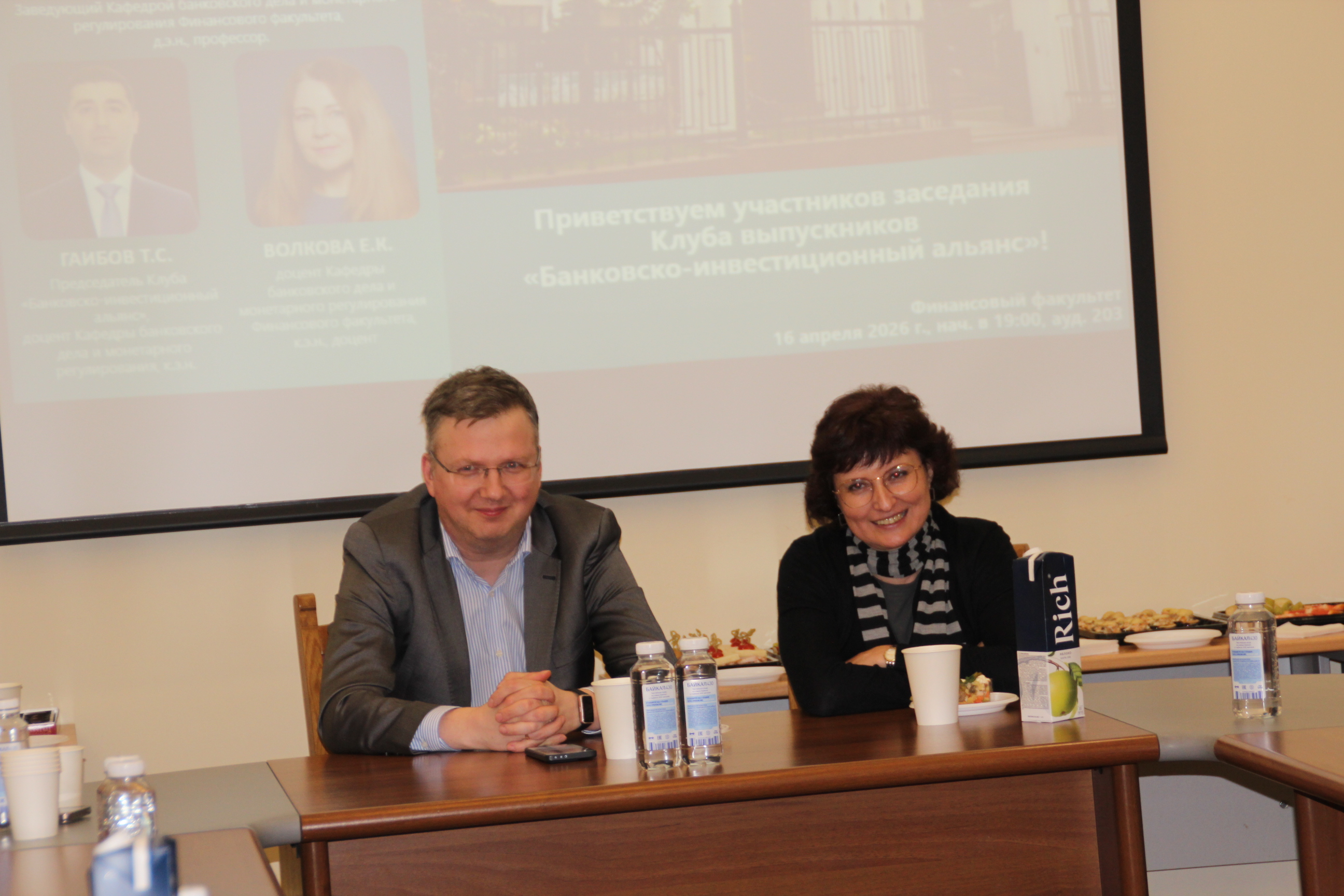 На Финансовом факультете 16 апреля 2026 года прошло заседание Клуба «Банковско-инвестиционный альянс» для выпускников Кафедры банковского дела и монетарного регулирования Финансового факультета.