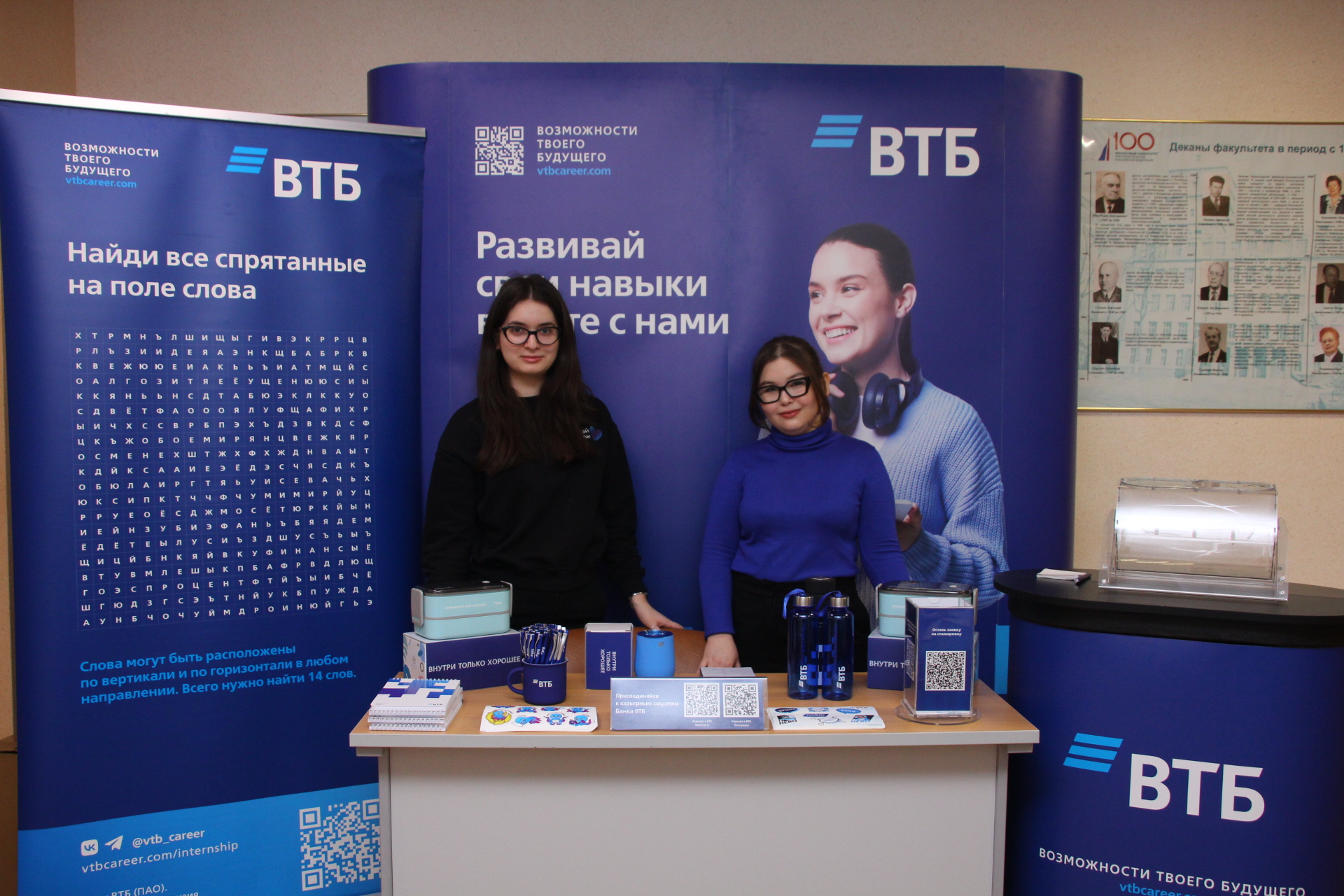 В рамках Всероссийского Финтех-форума также была проведена ярмарка вакансий от ведущих работодателей финансового сектора. В ярмарке приняли участие: ООО «Кэпт», Банк ВТБ (ПАО), АО «Банк ДОМ.РФ», Банк России, СК «Югория». Работодатели провели для студентов презентации карьерных возможностей, рассказали о программах стажировок, а также разыграли свою сувенирную продукцию. Ярмарку посетили более 200 студентов Финансового факультета.