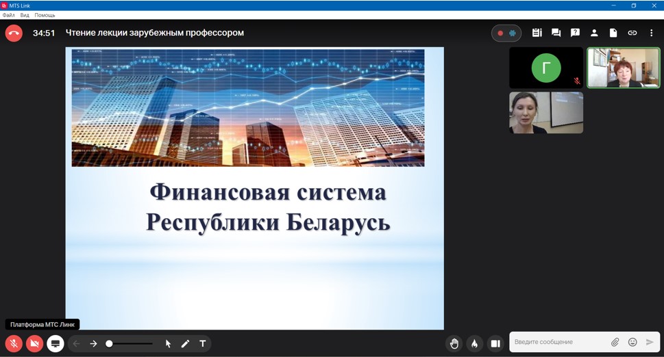 Лекция на тему «Финансовая система Республики Беларусь» для студентов 3 курса, обучающихся по профилю «Государственные и муниципальные финансы», была посвящена институциональным особенностям финансовой системы Республики Беларусь, специфике бюджетного устройства государства, подходам к управлению дефицитом бюджета и государственным долгом, действующим бюджетным правилам, механизмам среднесрочного программного планирования.