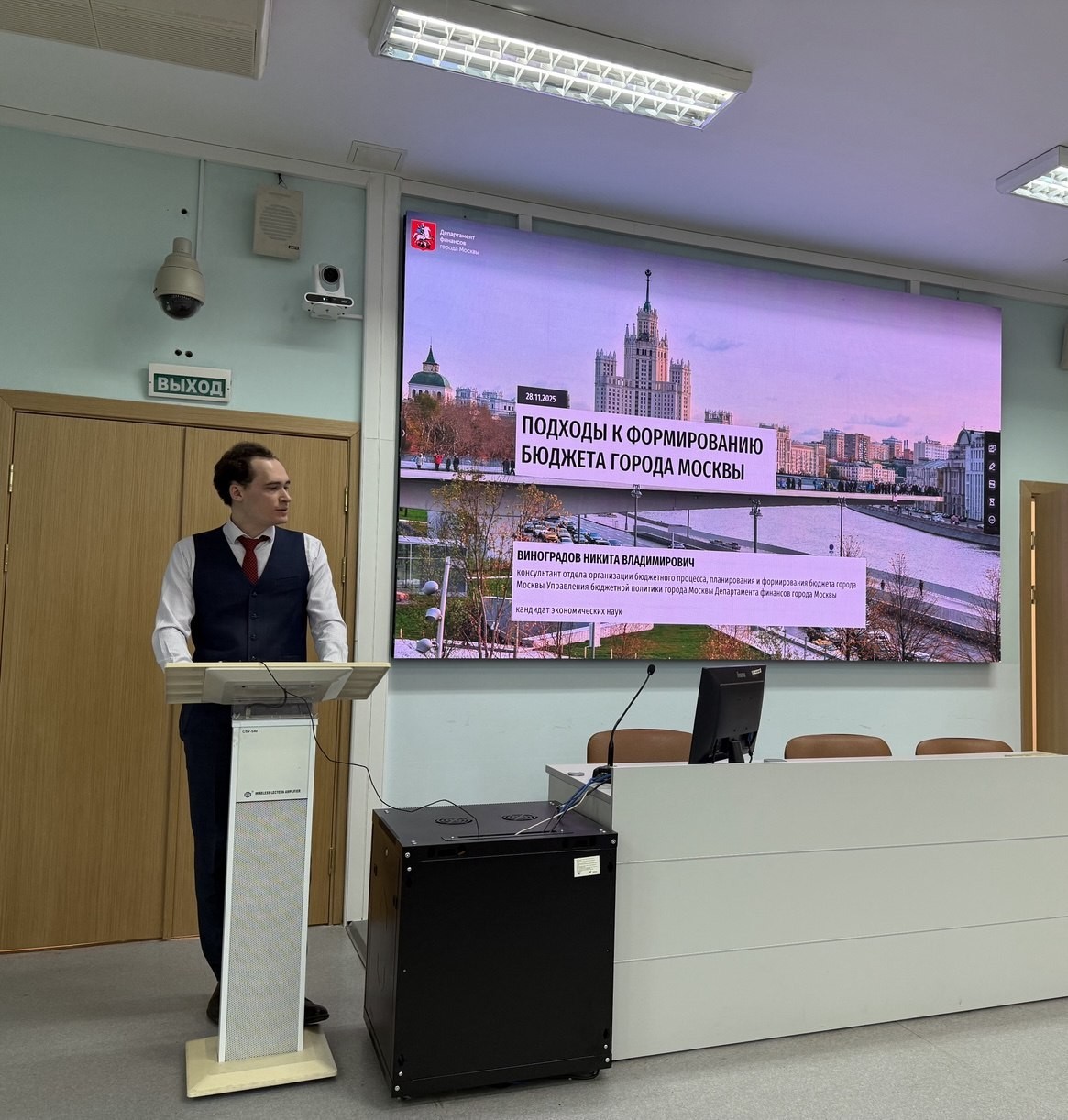 28 ноября 2025 года состоялась открытая лекция кандидата экономических наук, консультанта Отдела организации бюджетного процесса, планирования и формирования бюджета города Москвы Управления бюджетной политики Департамента финансов города Москвы, выпускника Кафедры общественных финансов Финансового факультета Никиты Владимировича Виноградова для студентов 3 и 4 курсов профиля «Государственные и муниципальные финансы».