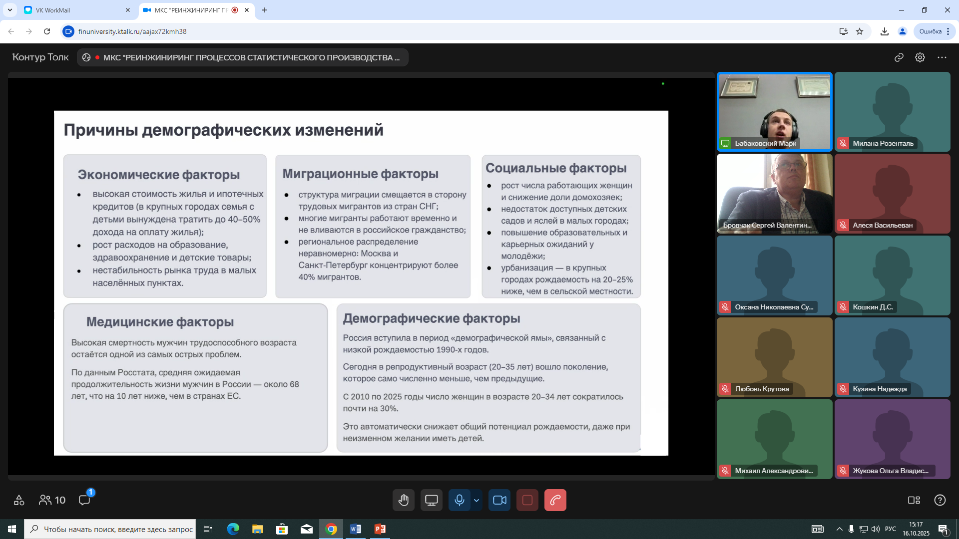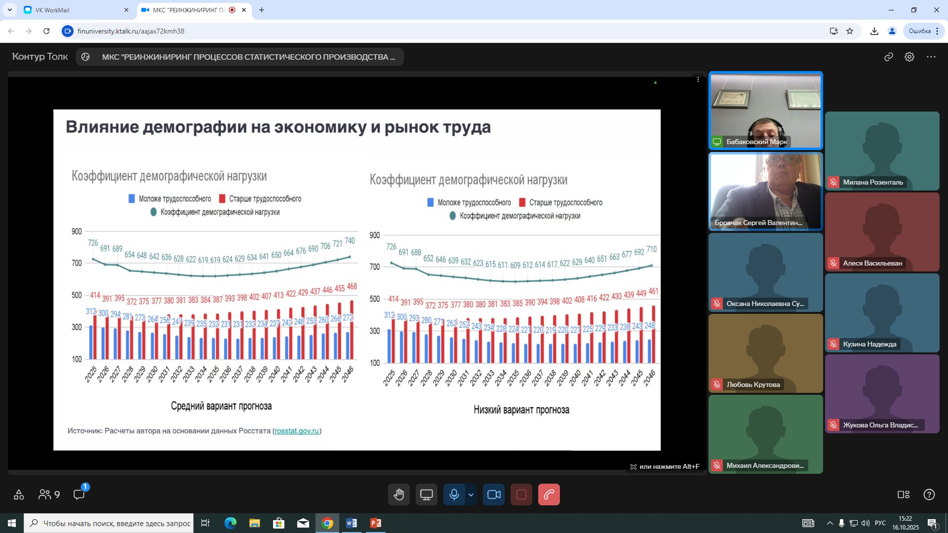16 октября 2025 г. Кафедра страхования и экономики социальной сферы провела в дистанционном формате традиционный осенний Международный круглый стол «Реинжиниринг процессов статистического производства в социальной сфере».