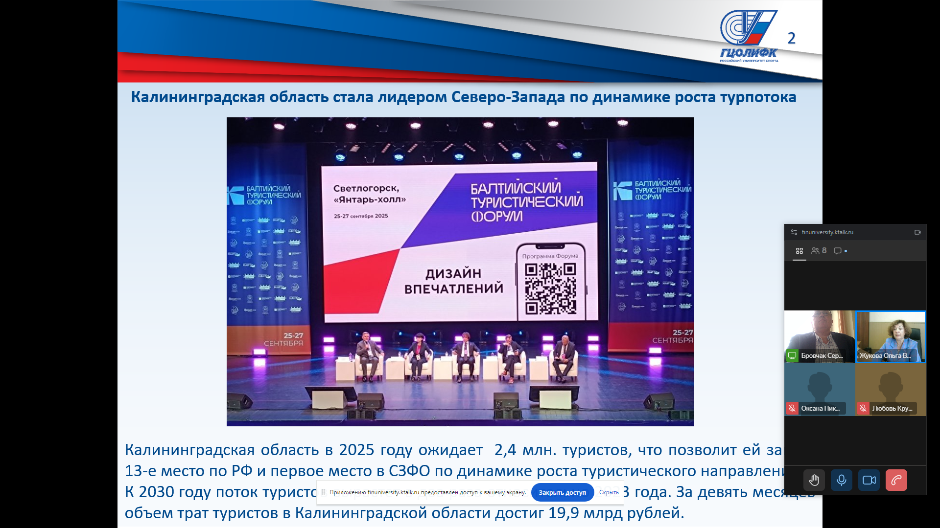 Проект по созданию спортивного кластера на территории Калининградской области, как фактор интеграции спортивной и туристической инфраструктуры представила Жукова Ольга Владиславовна, к.э.н., доцент, заведующий кафедрой менеджмента и экономики спортивной индустрии им. В.В. Кузина Российского государственного университета физической культуры, спорта, молодежи и туризма.