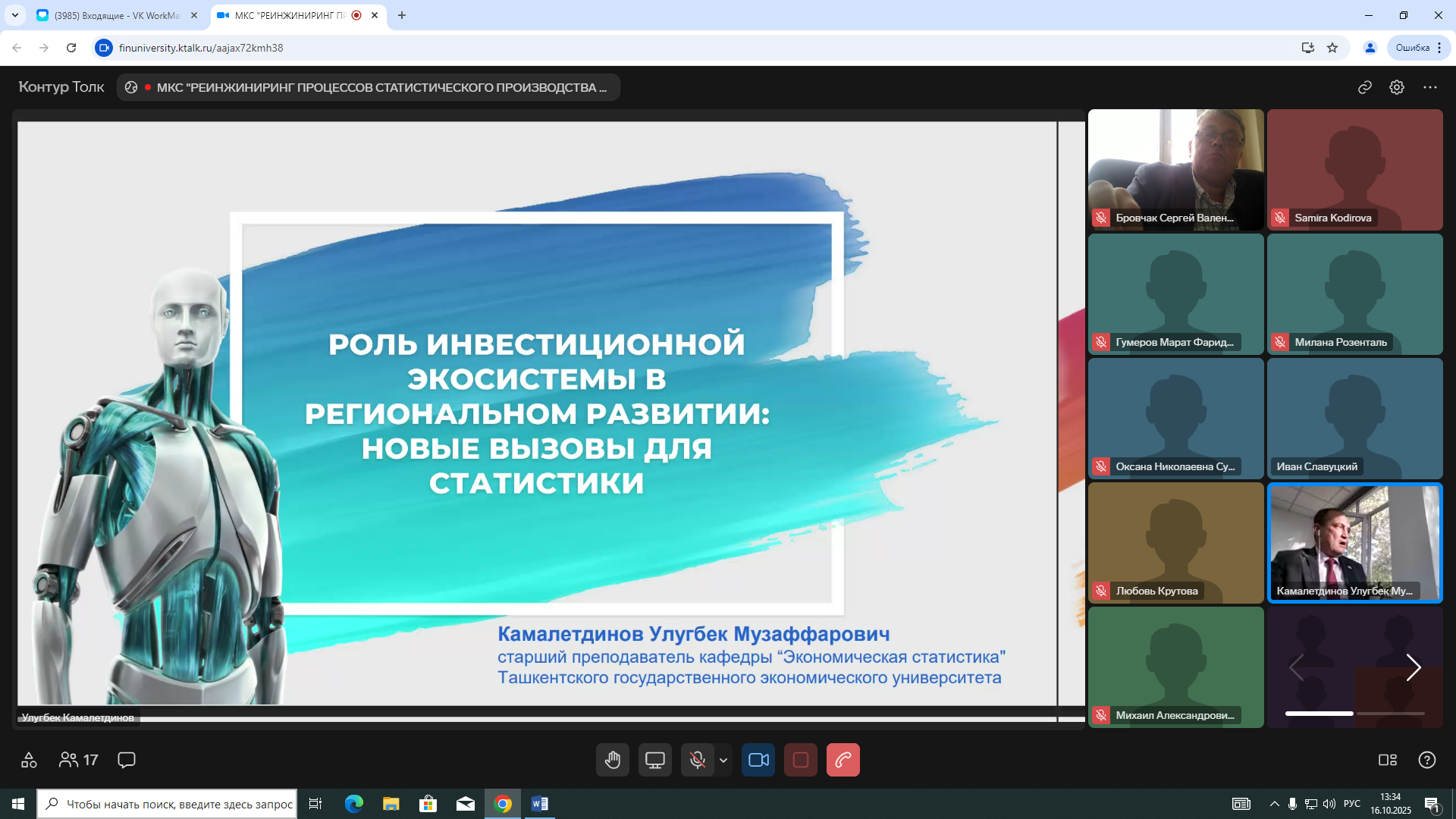 Камалетдинов Улугбек Музаффарович, старший преподаватель кафедры "Статистика" Ташкентского государственного экономического университета выступил с докладом «Роль инвестиционной экосистемы в региональном развитии: новые вызовы для статистики».