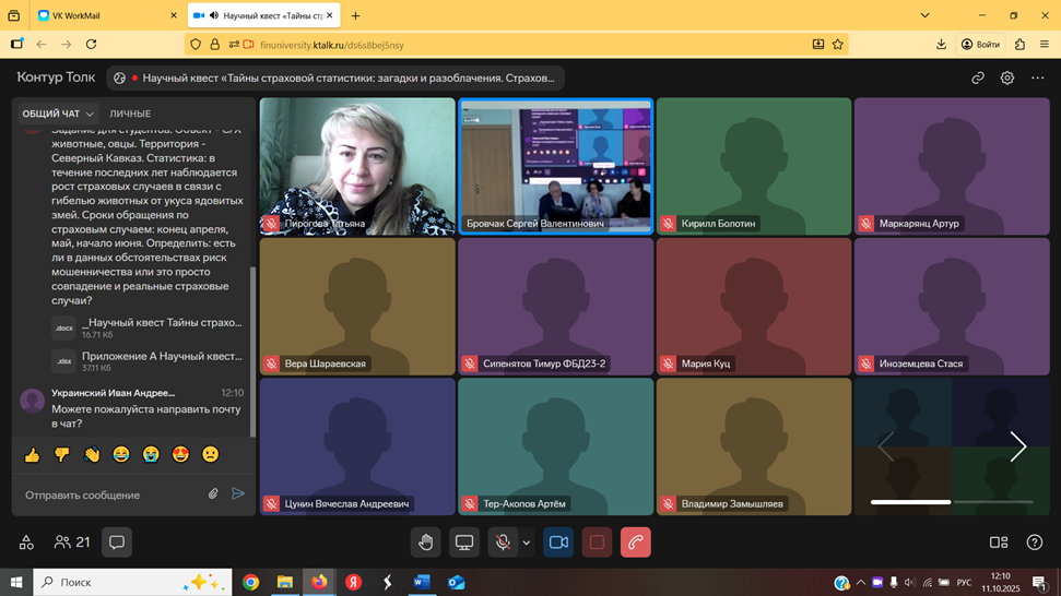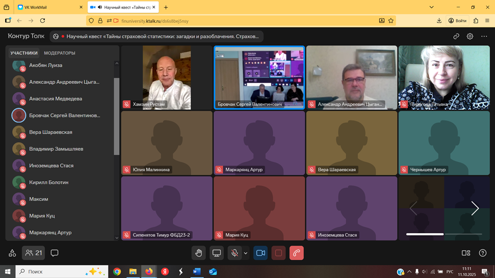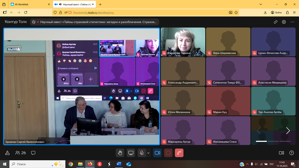 В рамках Международного фестиваля науки "NAUKA 0+" 2025 Кафедра страхования и экономики социальной сферы Финансового факультета Финуниверситета 11 октября 2025 г. провела в дистанционном формате научный квест «Тайны страховой статистики: загадки и разоблачения. Страховые детективы», в котором приняли участие более 30 студентов.