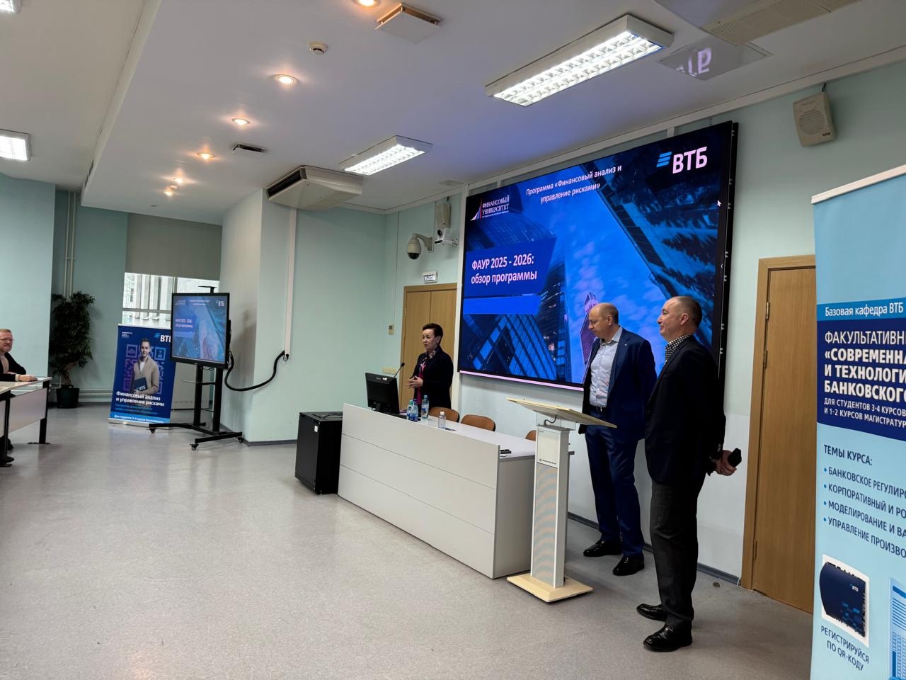 На открытии программы заведующий Базовой кафедрой ВТБ, член Правления Банка ВТБ Кондратенко Максим Дмитриевич рассказал студентам о важности программы для специалистов банковской сферы.