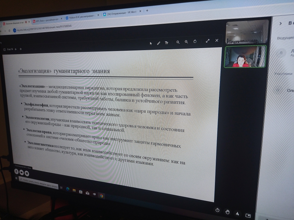27 ноября 2025 года на Кафедре иностранных языков и межкультурной коммуникации была проведена онлайн-лекция для студентов-лингвистов Факультета международных экономических отношений Финансового университета при Правительстве РФ. Лектором выступила кандидат филологических наук, доцент кафедры романо-германских языков Белорусского государственного университета Ольга Владимировна Сидоревич-Стахнова. Тема лекции — «Экология общения: от метафоры к науке о гармоничной коммуникации».