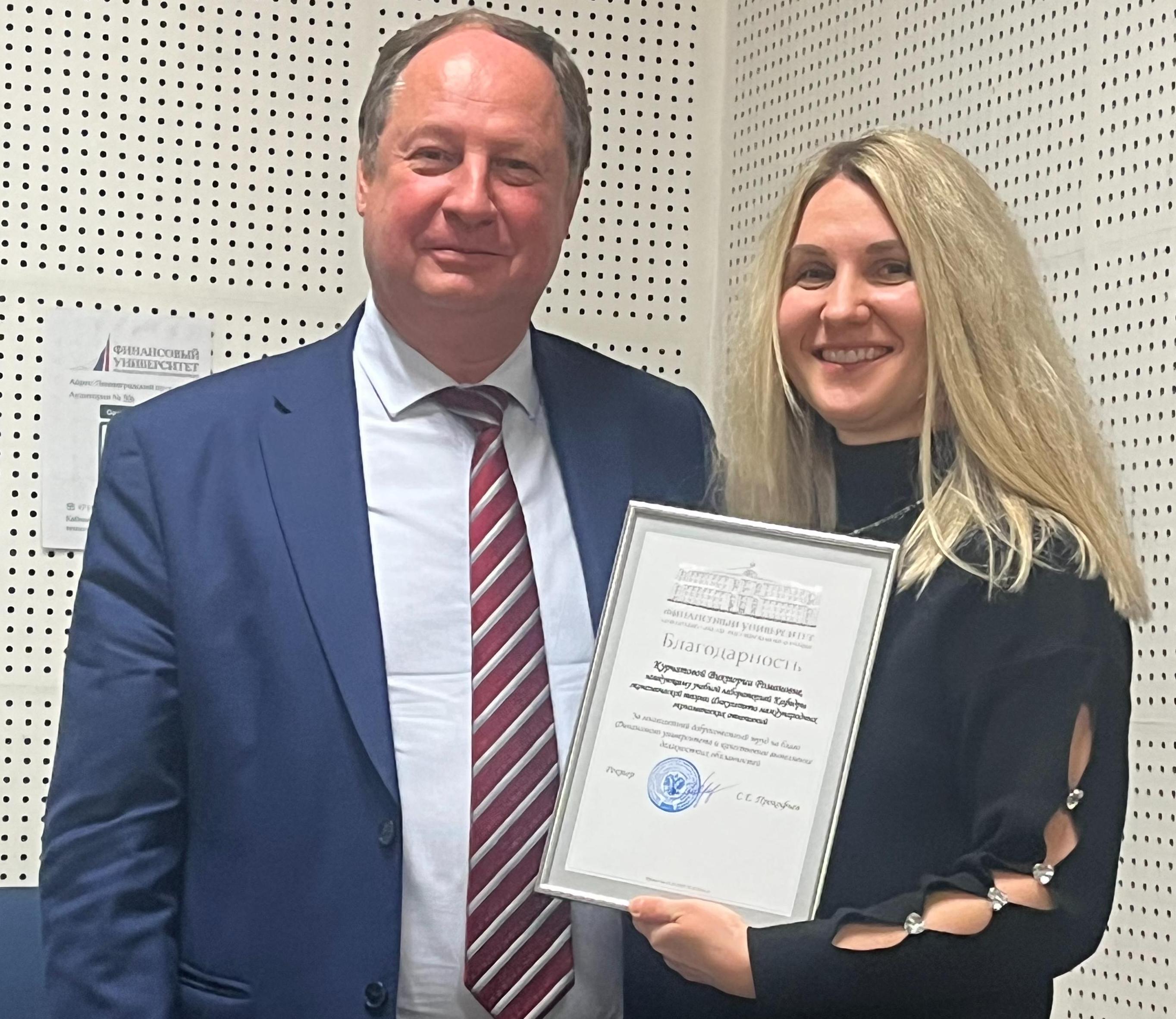Заведующей учебной лабораторией Кафедры экономической теории Факультета МЭО Курчатовой Виктории Романовне объявлена благодарность ректора Финансового университета за многолетний добросовестный труд на благо Финансового университета и качественное выполнение должностных обязанностей.