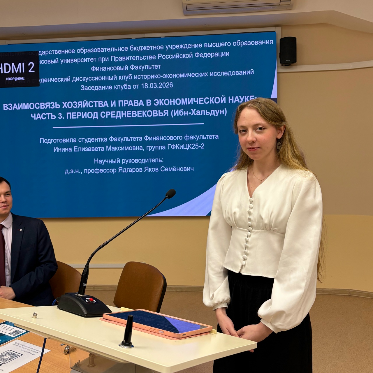 На заседании слушали научный доклад кандидата экономических наук, руководителя по специальным проектам ПСБ Андрея Валерьевича Бархоты на тему: «Неэкономические факторы формирования спроса на золото»; доклад члена Клуба - студентки Краевой Дарьи Сергеевны гр. ГФКиЦК25-2 на тему: «Взаимосвязь хозяйства и права в экономической науке: Часть 3. Период средневековья (Аквинат)»; доклад члена Клуба – студентки Ининой Елизаветы Максимовны гр. ГФКиЦК25-2 на тему: «Взаимосвязь хозяйства и права в экономической науке: Часть 3. Период средневековья (Ибн-Хальдун)».