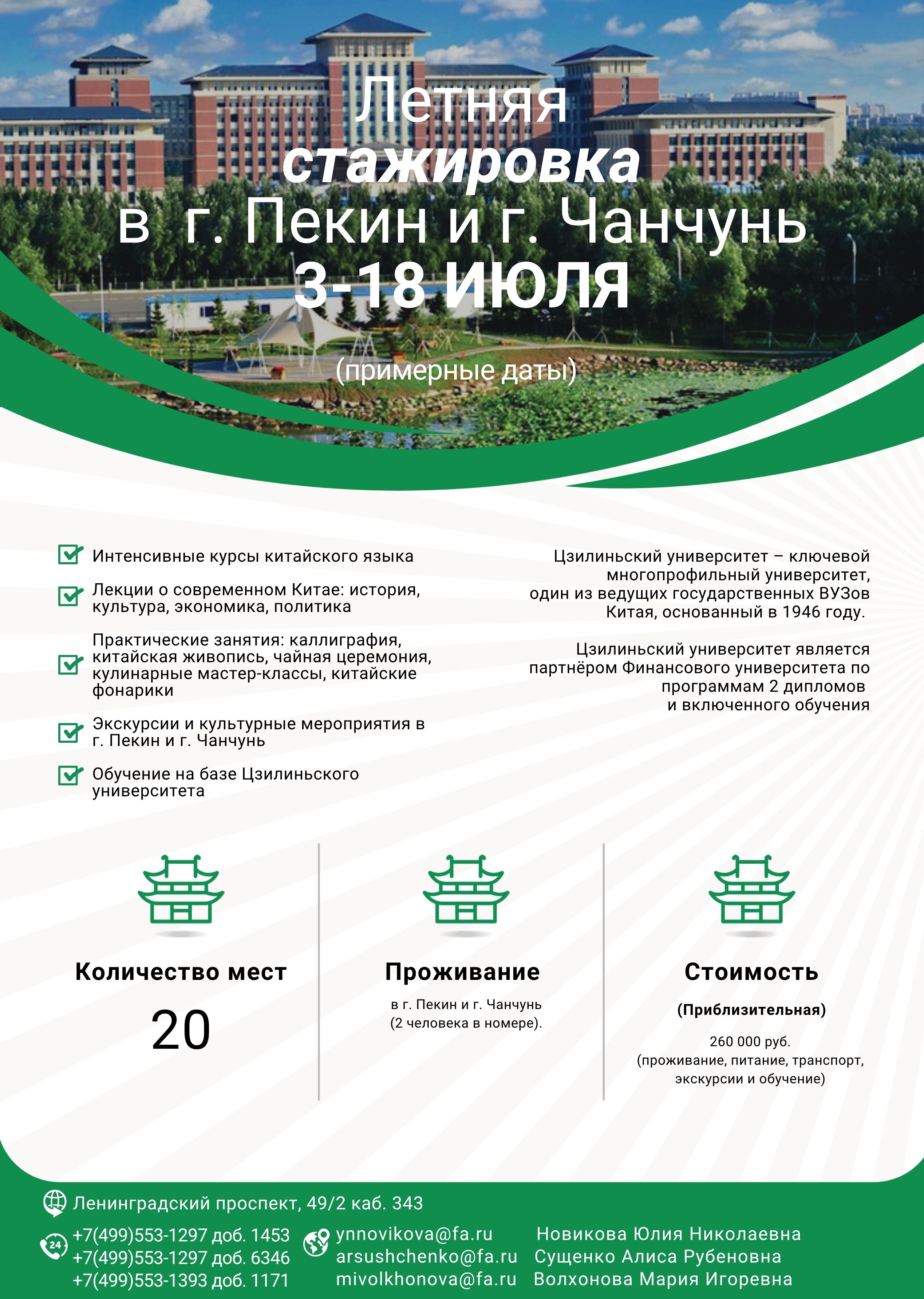 Друзья, мы рады пригласить вас на летнюю стажировку в Цзилиньский университет, которая пройдет 3-18 июля!