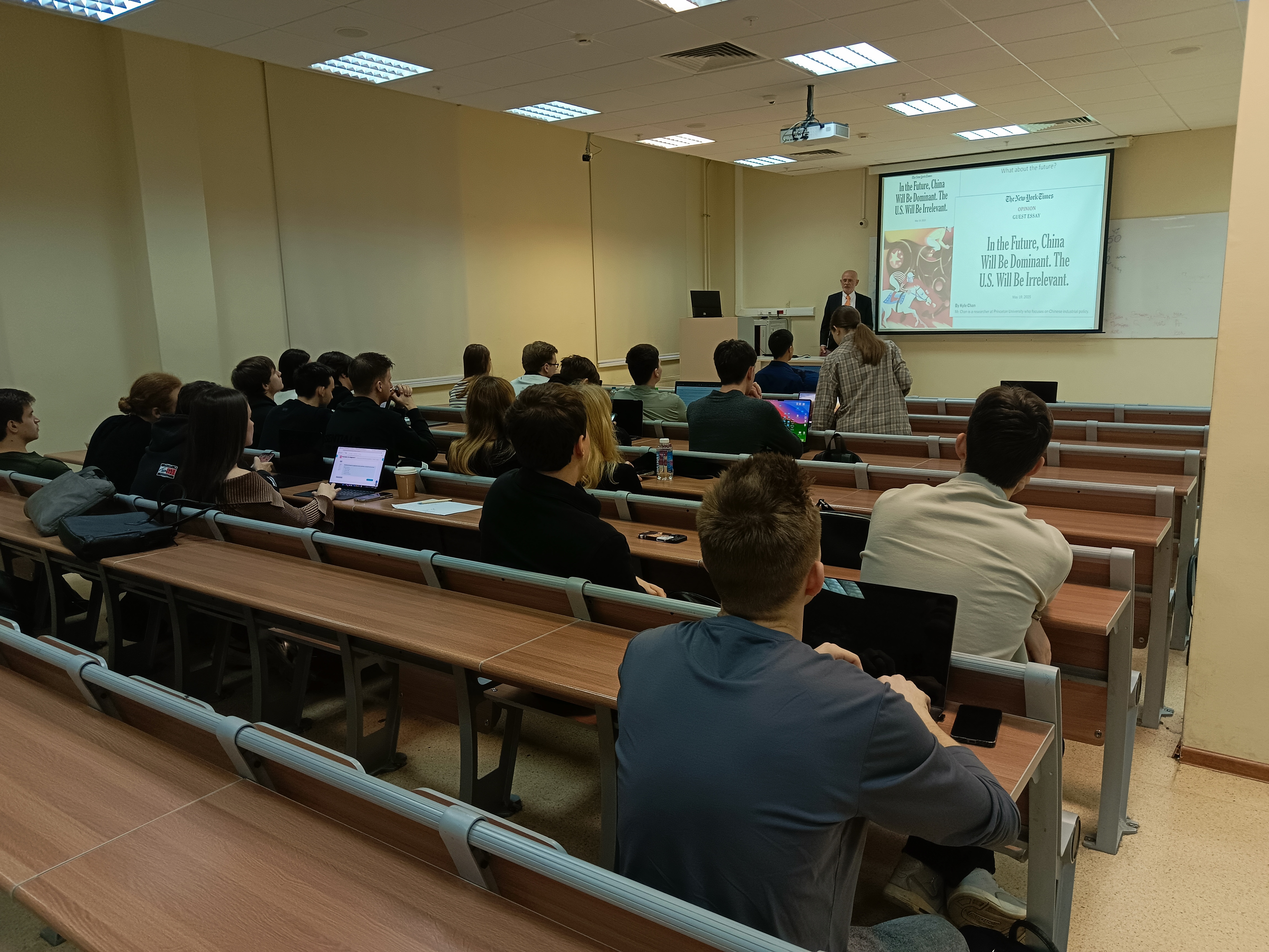 5 декабря 2025 года лекцию на тему Business Innovation по дисциплине Торговая политика и обеспечение интересов бизнеса прочитал для студентов нашего потока МэиТ22-1;2;3 Данилович Майк, профессор промышленного менеджмента, вице-президент по международному партнерству Шанхайского университета Дяньцзи, КНР, директор Стокгольмского центра, Швеция.