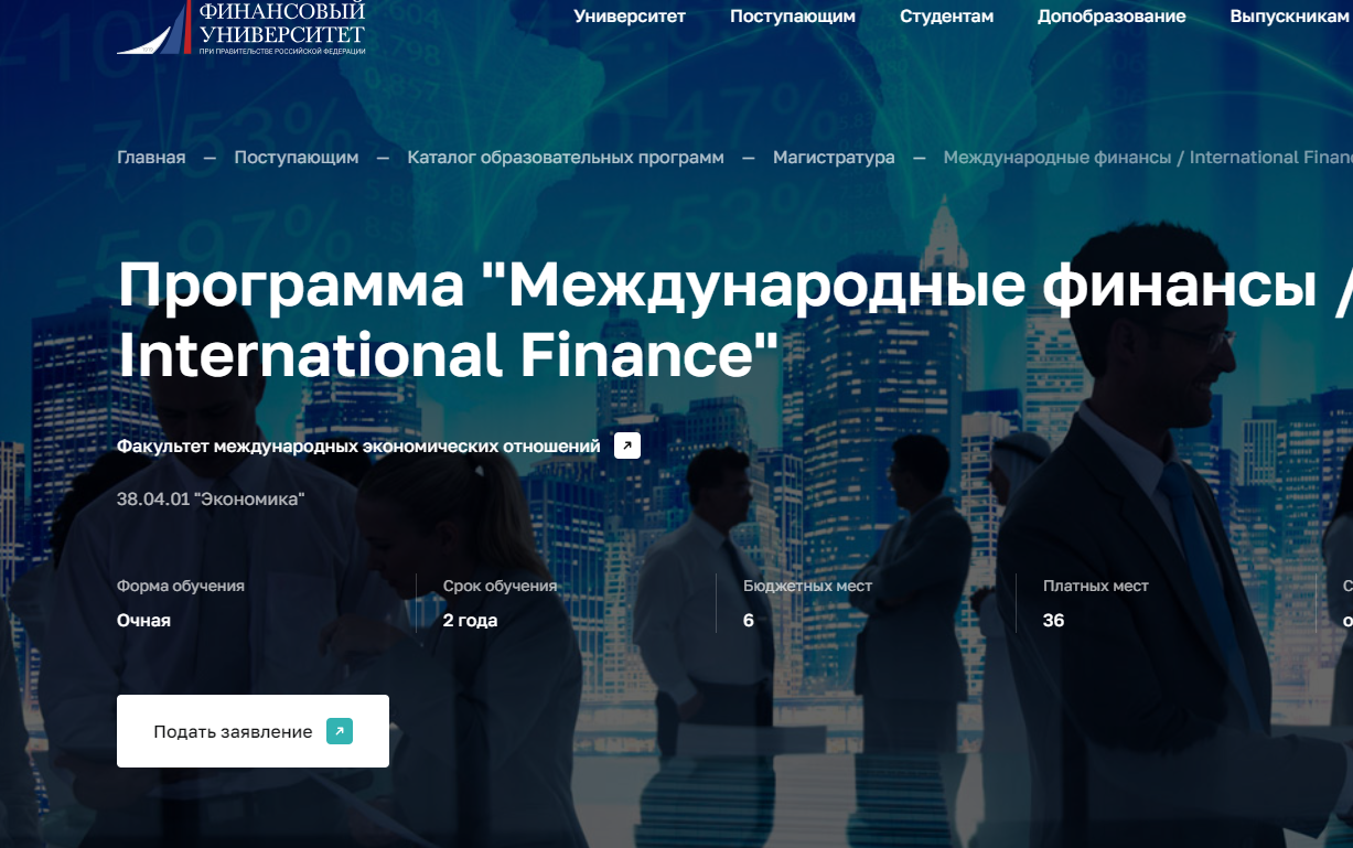 Программа «Международные финансы / International Finance» представляет собой сбалансированный комплексный набор дисциплин магистерской подготовки, ориентированный на формирование уникальных компетенций в области мировой экономики и мировых финансов. Ее ключевая цель — подготовить высококвалифицированных специалистов, способных эффективно работать в условиях глобализации финансовых потоков и международной деловой активности.