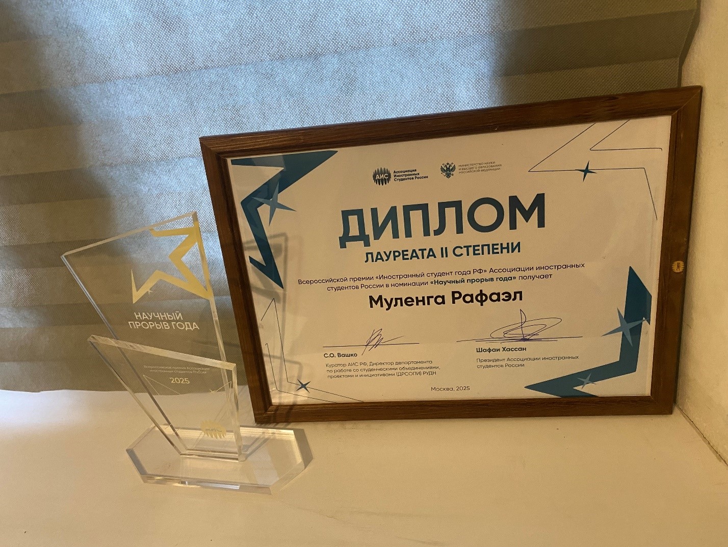 Рафаэль Муленга, студент 2 курса аспирантуры факультета МЭО, завоевал Диплом лауреата 2 степени в номинации «Научный прорыв года», отмеченный за свои научные достижения, публикации и активное участие в исследовательских проектах, что вносит вклад в международный научный обмен.
