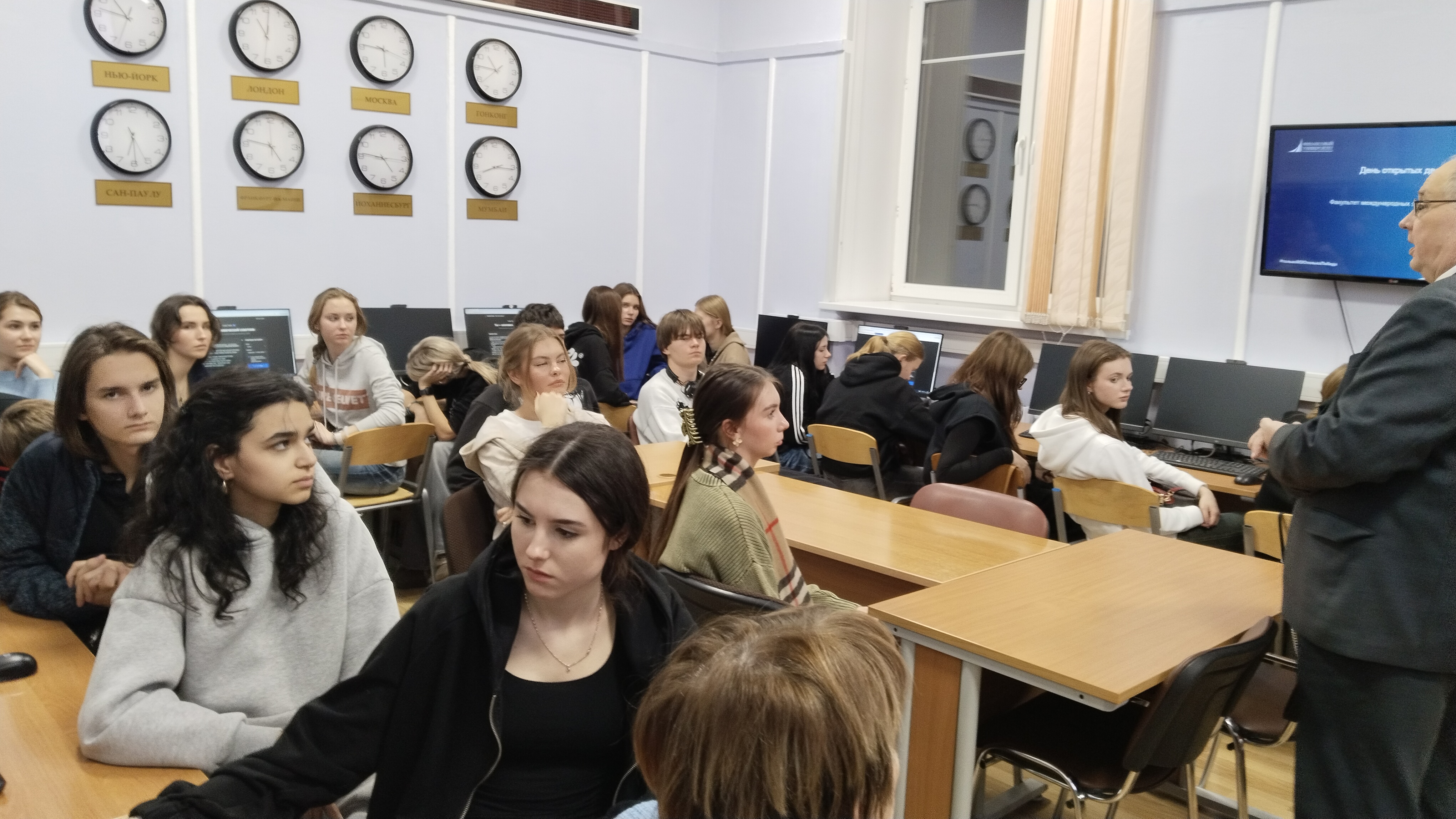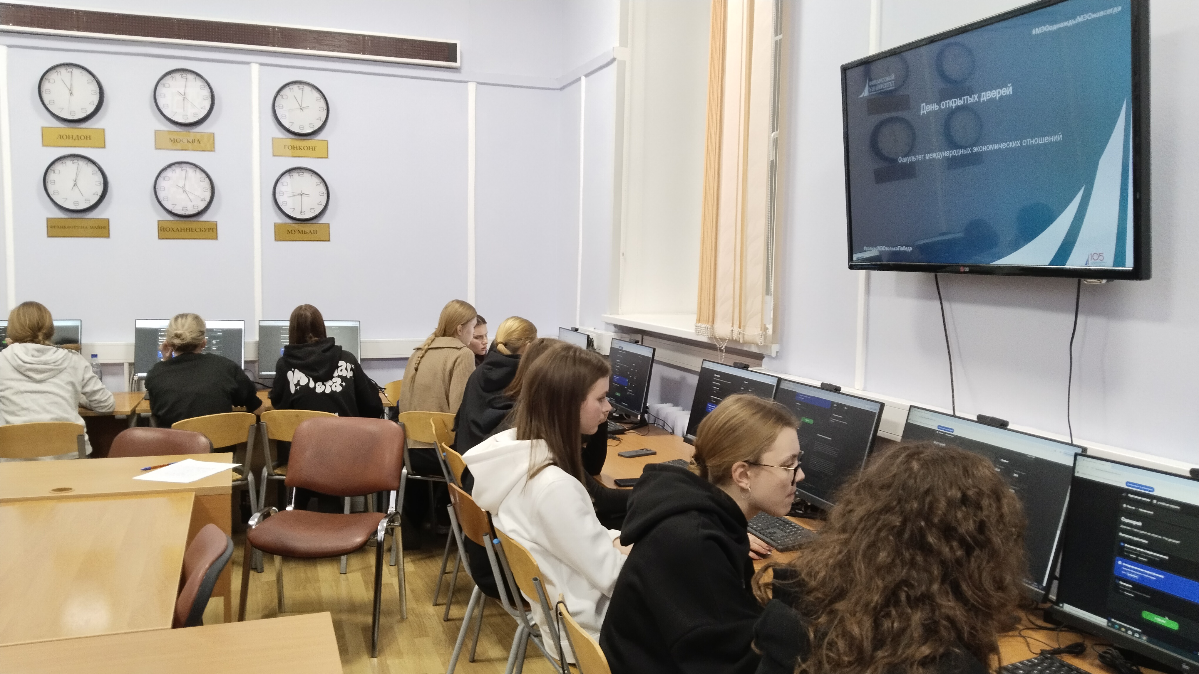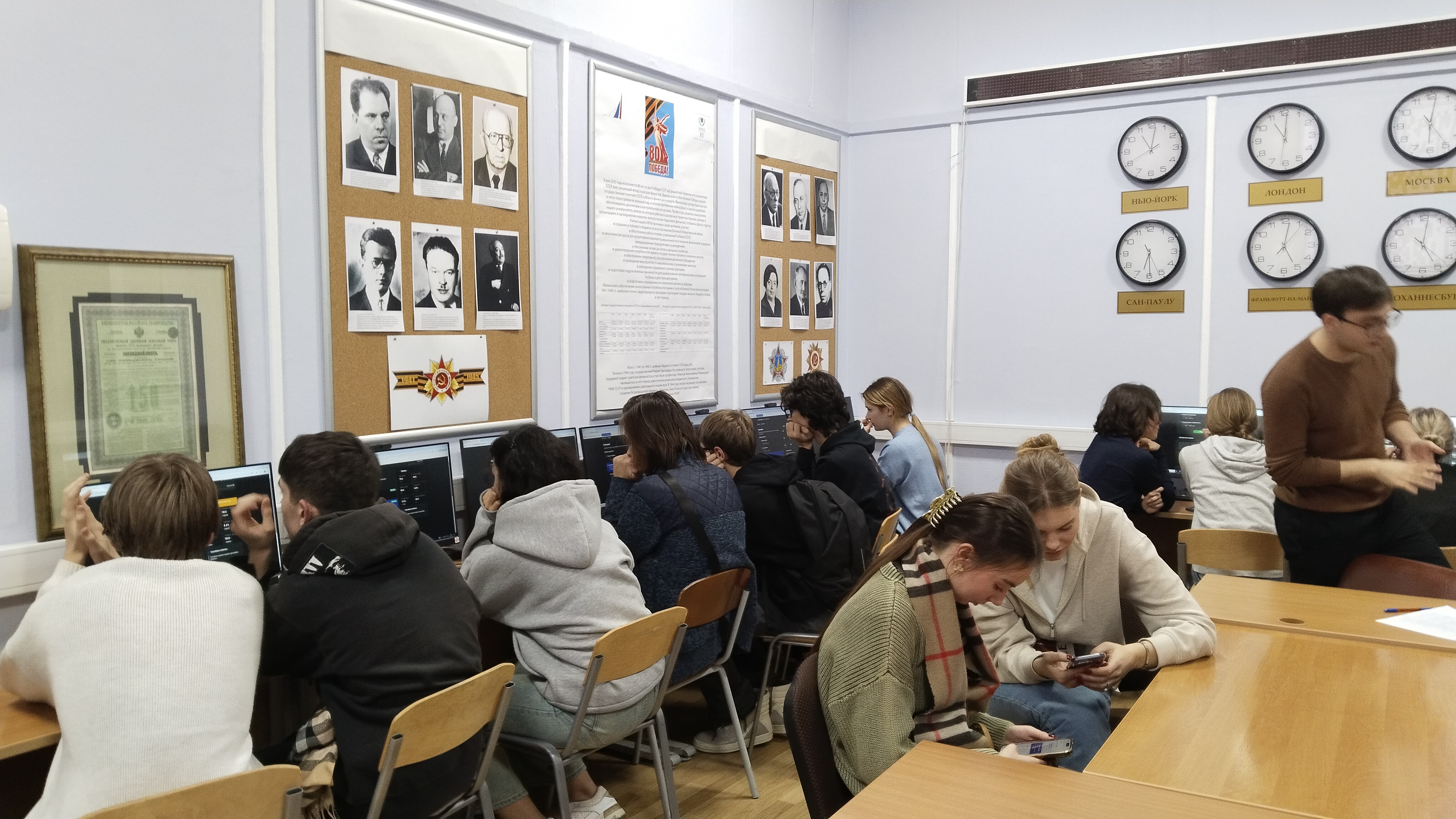 5 декабря учащиеся Второй Санкт-Петербургской Гимназии стали гостями Финансового университета в Москве. Встреча началась с посещения Международной финансовой лаборатории кафедры мировой экономики и мировых финансов факультета МЭО. Руководитель лаборатории Валерий Ю. Барабанов подробно рассказал гостям о направлениях подготовки и особенностях учебы в университете, ответил на вопросы школьников.