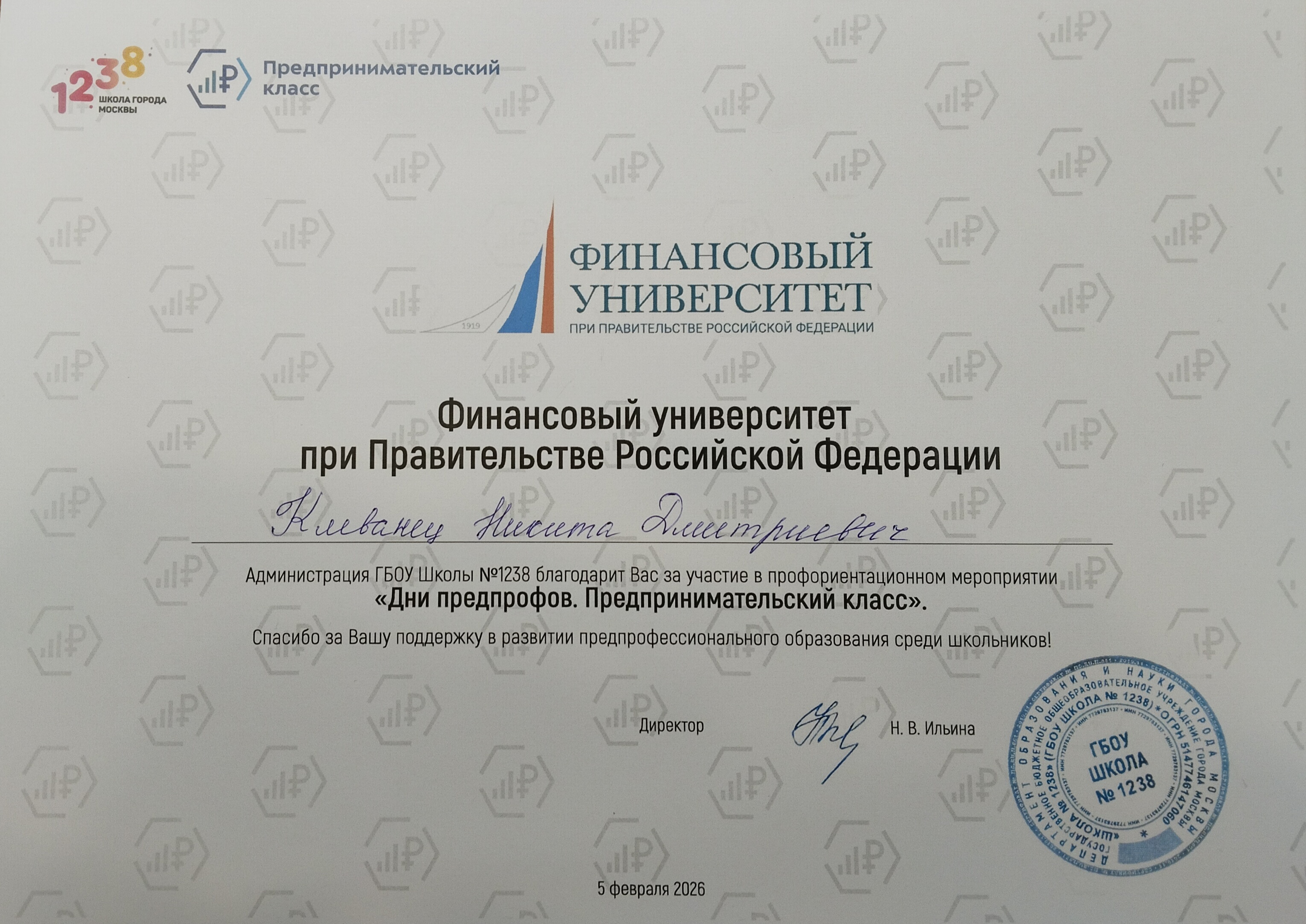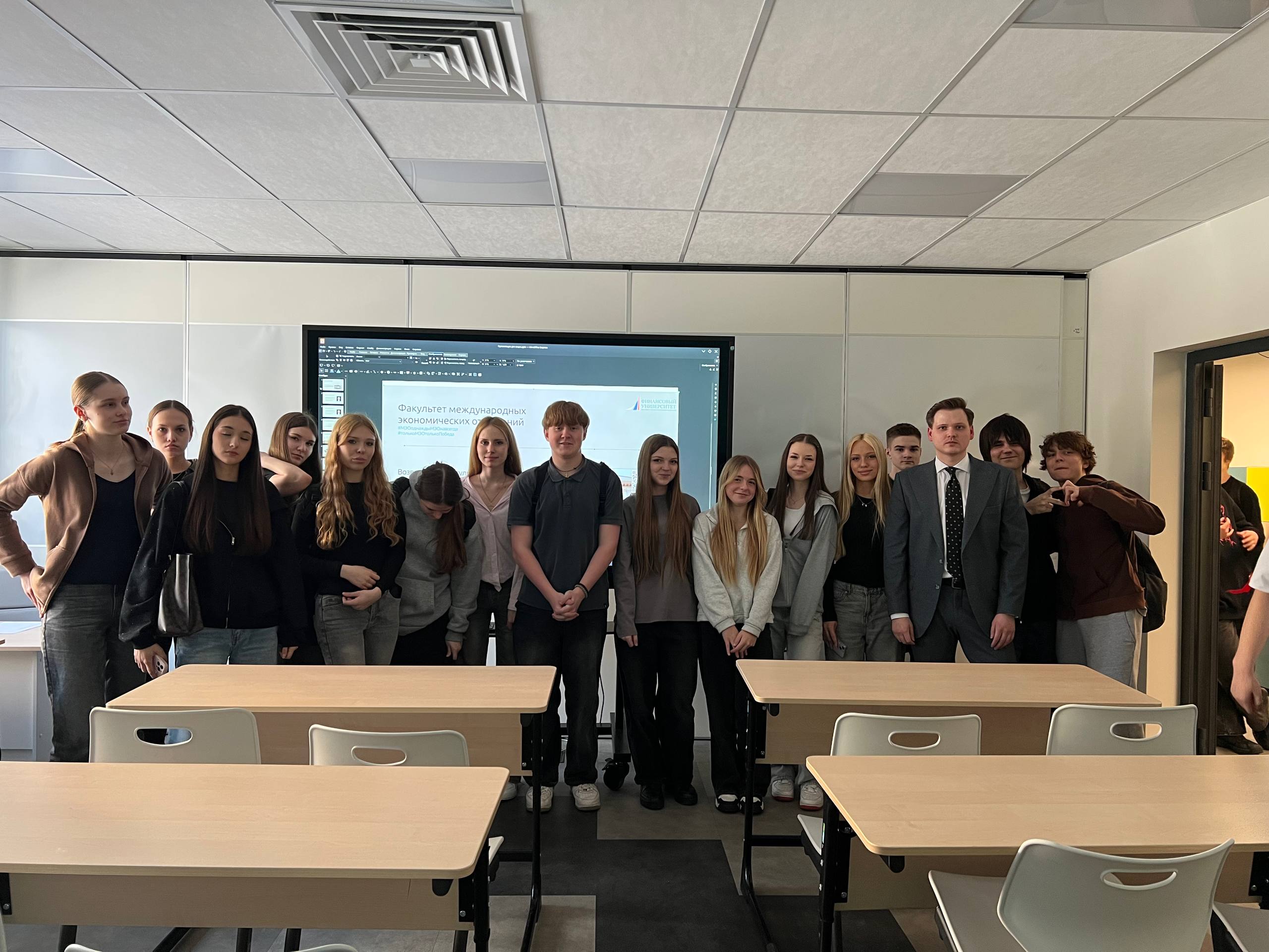 5 февраля 2026 г. на базе ГБОУ Школы №1238 прошло профориентационное мероприятие «Дни проектов предпрофессионального образования: предпринимательский класс», в рамках которого ассистент Кафедры мировой экономики и мировых финансов Клеванец Н.Д. представил выпускникам направления подготовки Факультета международных экономических отношений. В ходе встречи школьников познакомили с особенностями обучения на факультете международных экономических отношений, возможностями формирования востребованных компетенций и дальнейшего профессионального развития. Отдельное внимание было уделено возможности защиты выпускной квалификационной работы в формате стартап-проекта, что особенно актуально для будущих предпринимателей.