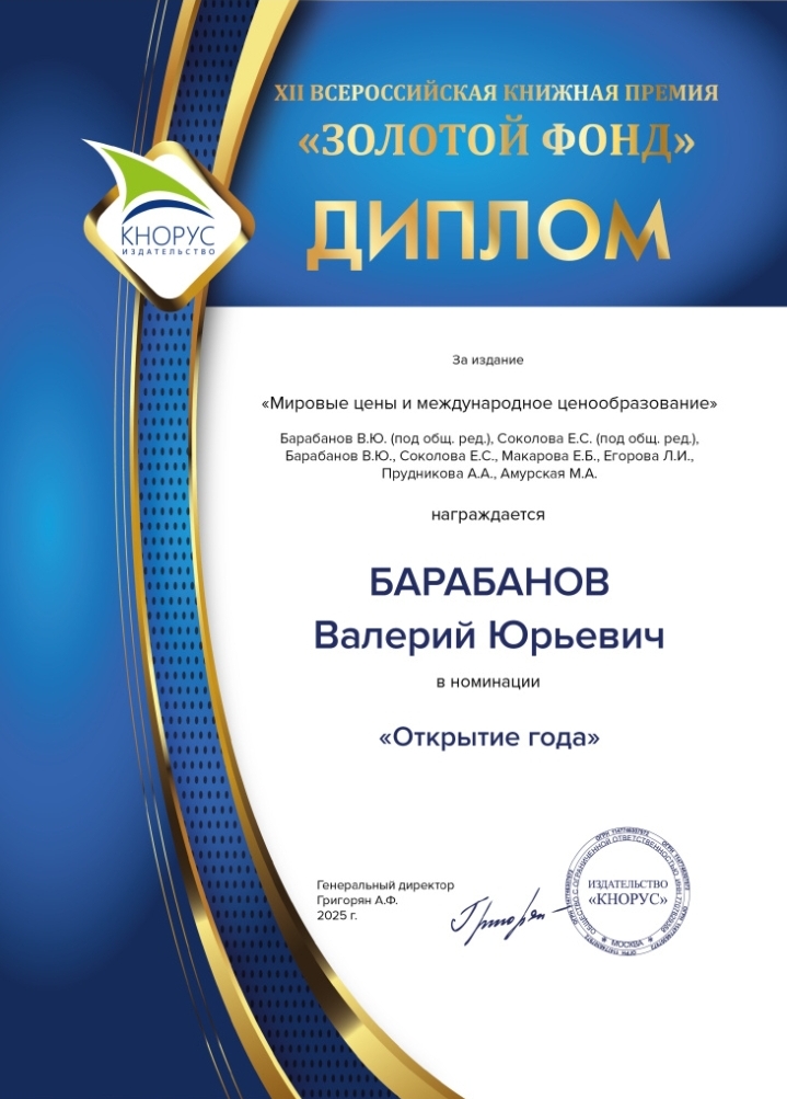 Поздравляем с заслуженной наградой авторский коллектив учебника «Мировые цены и международное ценообразование» под руководством к.э.н., доцента, заведующего международной финансовой лабораторией Барабанова В.Ю