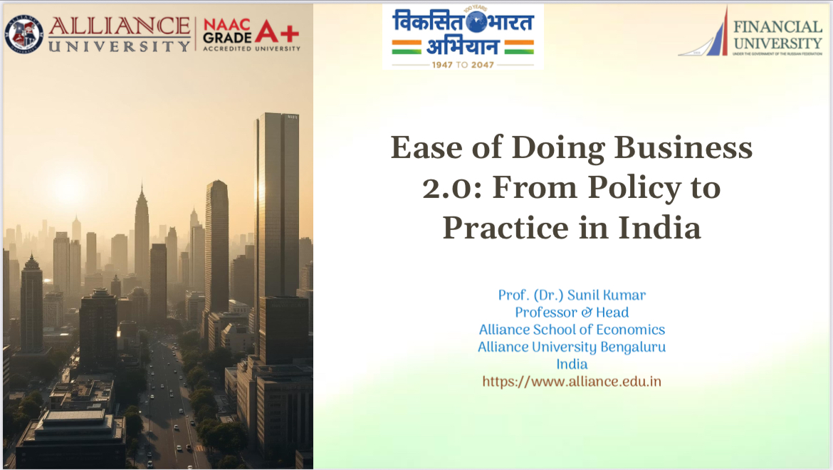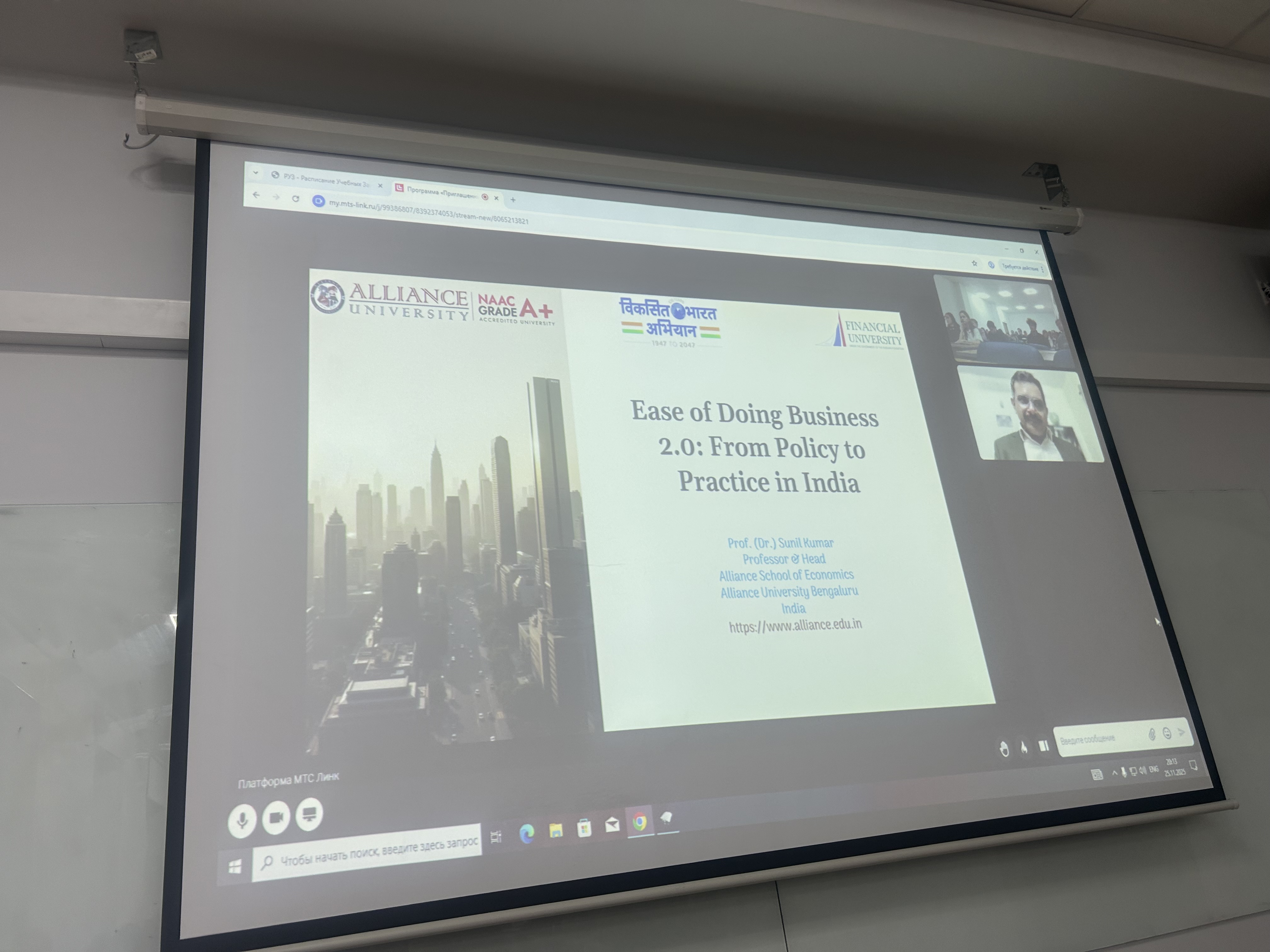 25 ноября 2025 г. в рамках программы «Приглашенный профессор» профессор Сунил Кумар, заведующий Кафедрой экономики в Университете Альянса (г.Бангалор, Индия), прочитал онлайн лекцию для студентов программы магистратуры «Международная экономика и бизнес-инжиниринг». На данной образовательной программе магистратуры на Факультете международных экономических отношений реализуется программа двух дипломов совместно с Университетом Альянса (г. Бангалор, Индия) и профессор также рассказал студентам об университете-партнере. Тема лекции «Как легко делать бизнес 2.0: от политики к практике в Индии» очень интересная и прикладная. Профессор Сунил Кумар рассказал об особенностях ведения бизнеса и о перспективах развития этого направления в Индии. Магистранты с интересом слушали лекцию и активно задавали вопросы. Благодарим профессора Сунила Кумара за лекцию и приглашаем посетить Факультет международных экономических отношений с курсом лекций весной 2026 года.