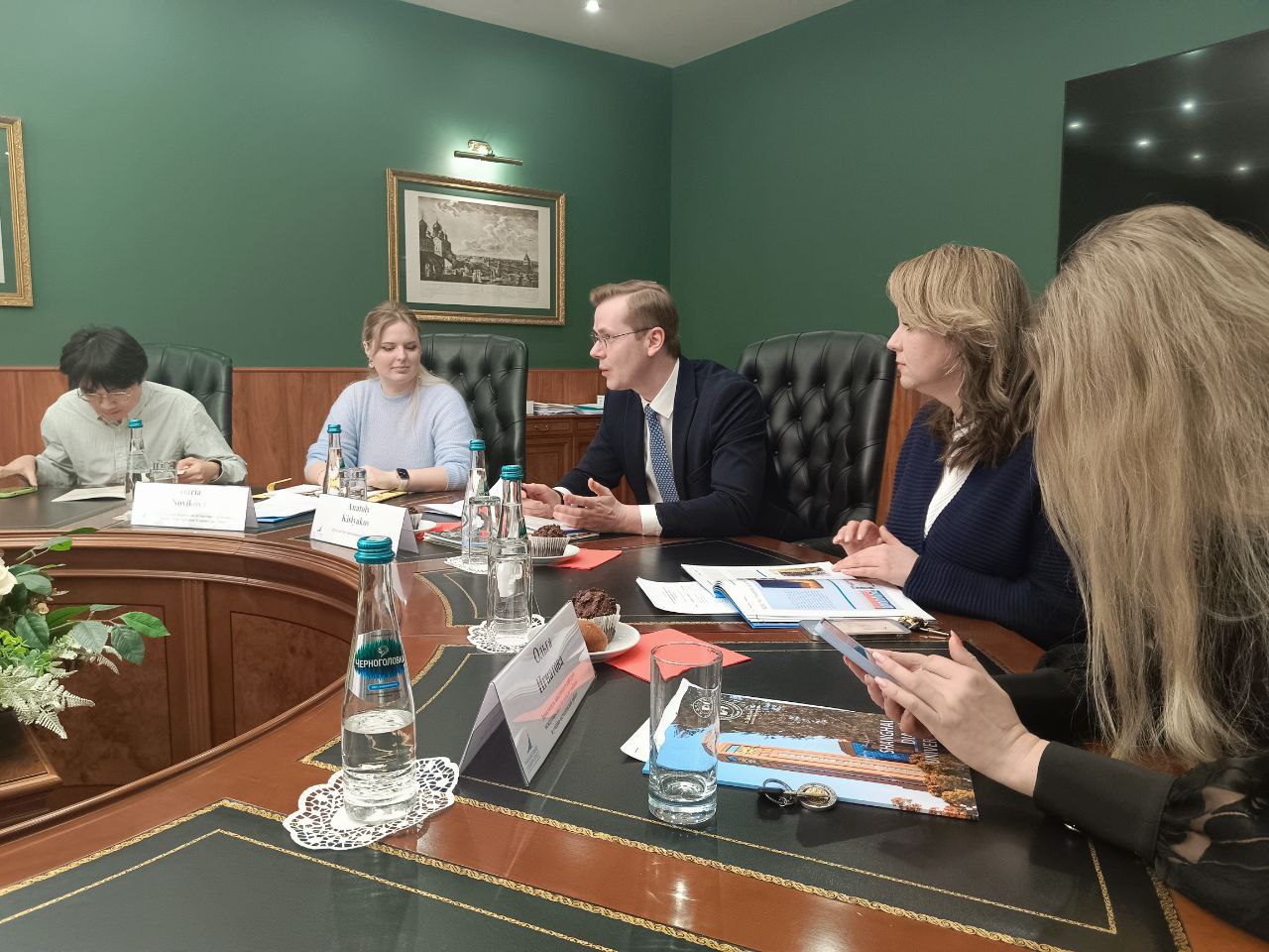 Директор по международному сотрудничеству Анатолий Сергеевич Кисляков, заместитель декана по связям с российскими и международными партнерами Факультета международных экономических отношений Мария Игоревна Волхонова и заместитель заведующего Кафедрой международного бизнеса Ольга Владимировна Игнатова провели встречу.