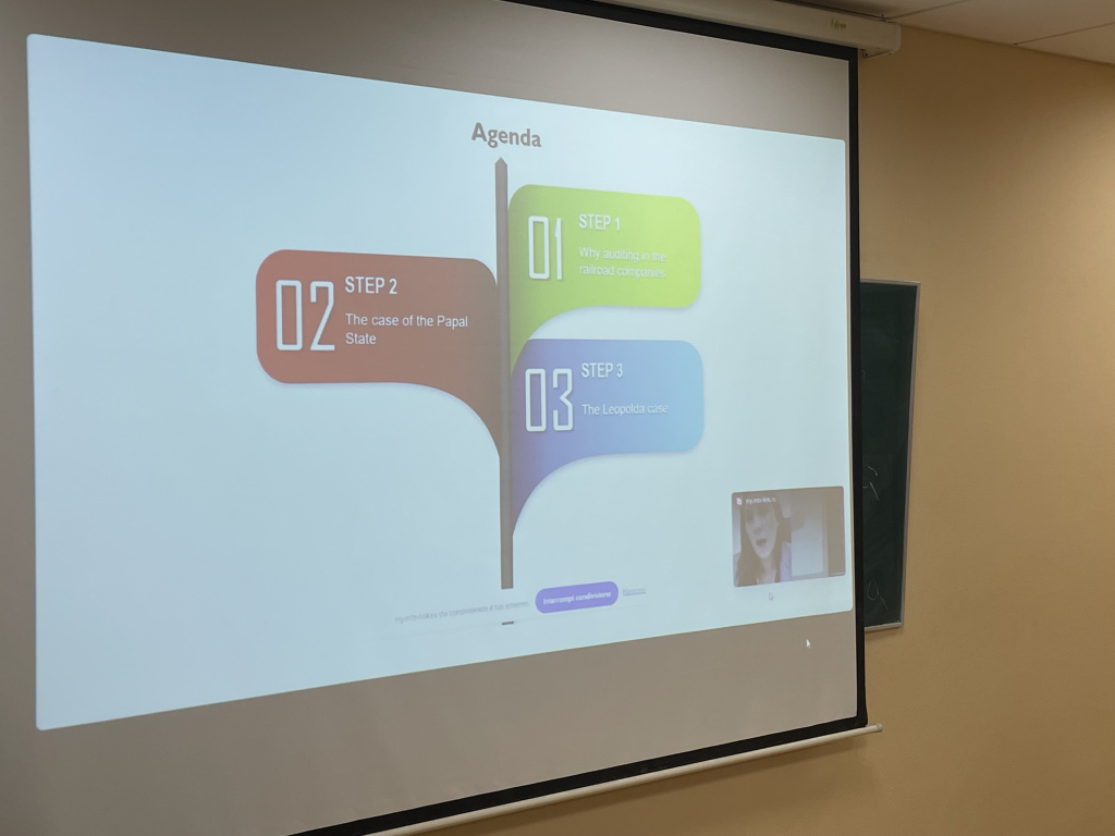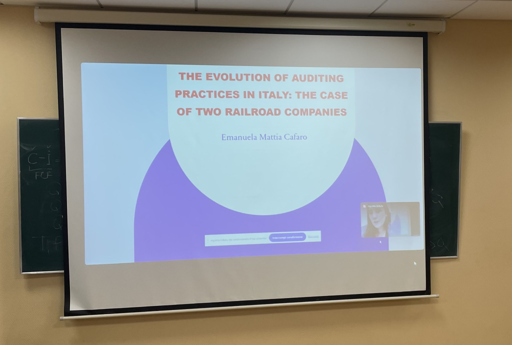 Эмануэла Кафаро является автором публикаций в высокорейтинговых журналах, обладателем премии «Тито Антони» Итальянского общества историков бухгалтерского учета (2018 г.). В своей презентации на английском языке, посвященной эволюции и современным тенденциям развития финансового учета в Италии, Эмануэла Кафаро представила подробный разбор двух кейсов, связанных с учетно-аналитической практикой периода строительства первых железных дорог в Италии, обратившись к непростой теме информационного обеспечения крупных социальных проектов, актуальной и сегодня.