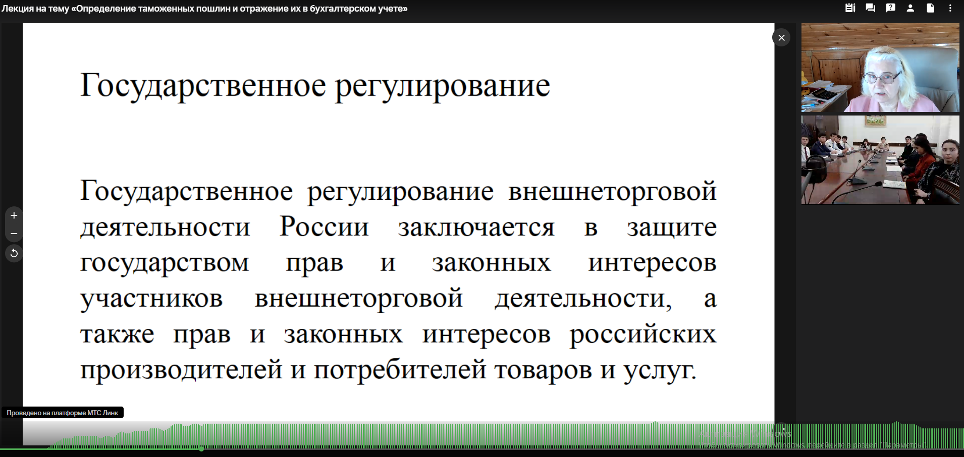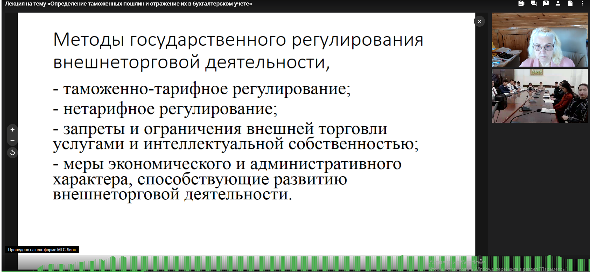 В рамках реализации программы «Приглашенный профессор» 05.03.2026 д.э.н., профессор Кафедры аудита и корпоративной отчетности Факультета налогов, аудита и бизнес-анализа Мезенцева Татьяна Мартемьяновна была приглашена Таджикским национальным университетом, г. Душанбе, Республика Таджикистан для чтения лекции «Определение таможенных пошлин и отражение их в бухгалтерском учете» в дистанционном формате, на безвозмездной основе магистрантам, преподавателям и русскоязычным студентам второго и третьего курса специальности 1-25010800 «Бухгалтерский учет, анализ и аудит», факультета учета и цифровой экономики.