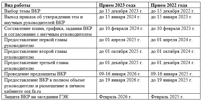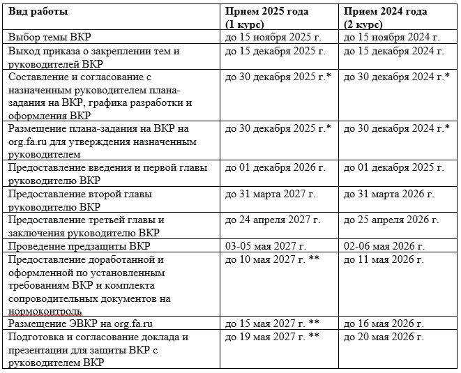 График подготовки ВКР на 2025/2026 учебный год (очная форма)
