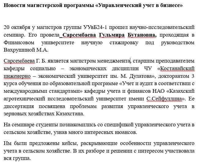 Новости магистерской программы «Управленческий учет в бизнесе»