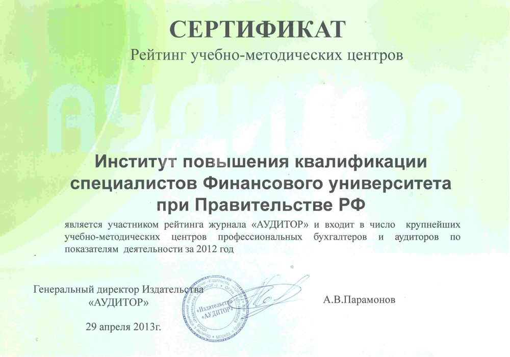 - сертификат Финансового университета при Правительстве РФ