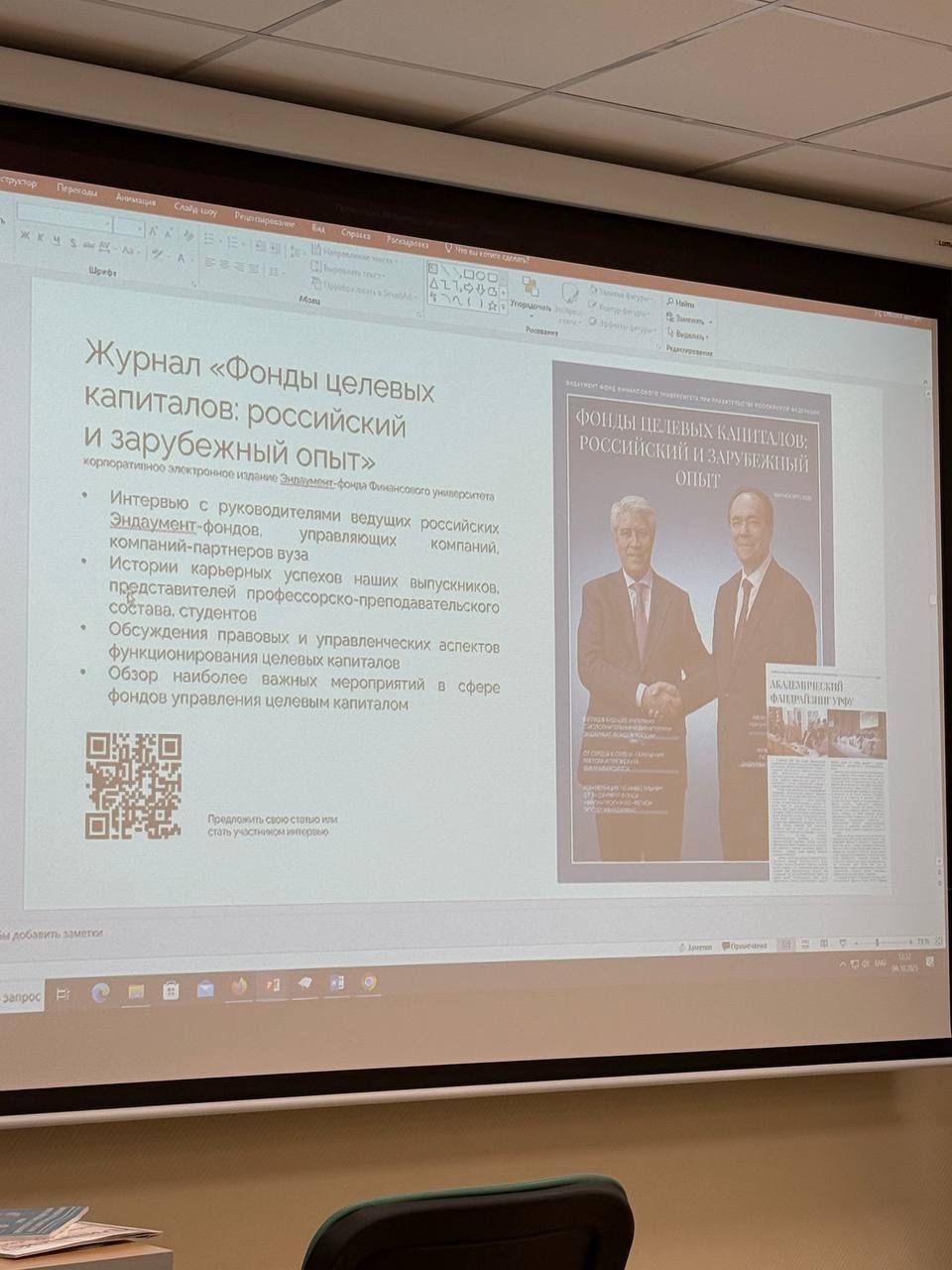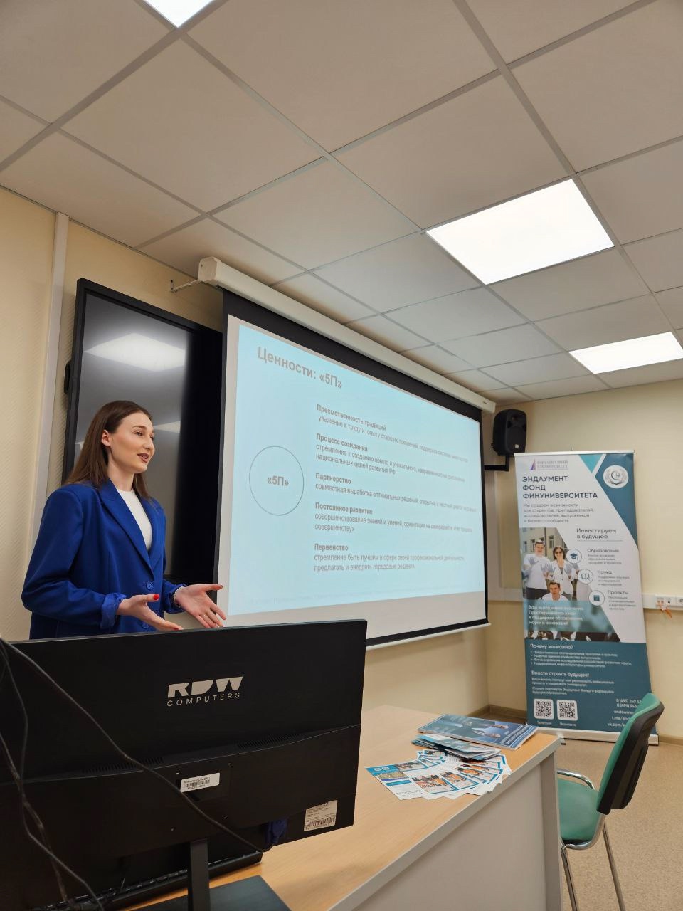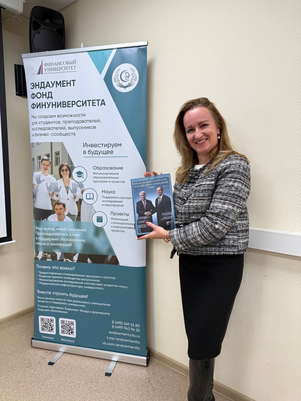 Финалом мероприятия стало выступление исполнительного директора Фонда управления целевым капиталом Финансового университета Марии Родионовой. Слушатели узнали о возможностях, которые сегодня открывает Фонд, и о том, как выпускники могут участвовать в развитии университета, создавая тем самым прочную основу для будущих поколений.