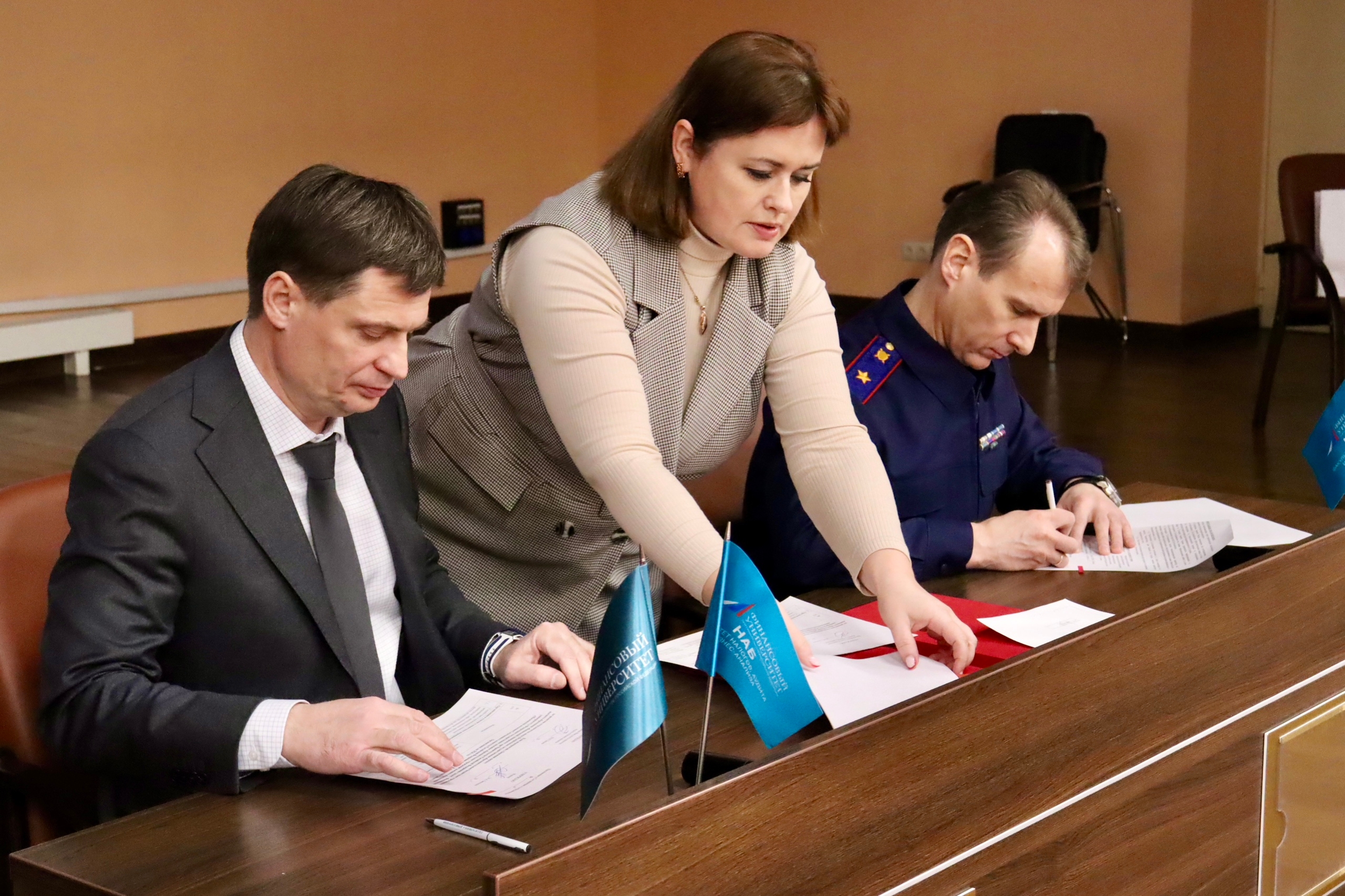Свои подписи под документом, открывающим новые перспективы для студентов и профессионалов, поставили декан Факультета налогов, аудита и бизнес-анализа Финансового университета Вадим Засько и ректор Московской академии Следственного комитета имени А.Я. Сухарева, генерал-майор юстиции Алексей Бессонов.