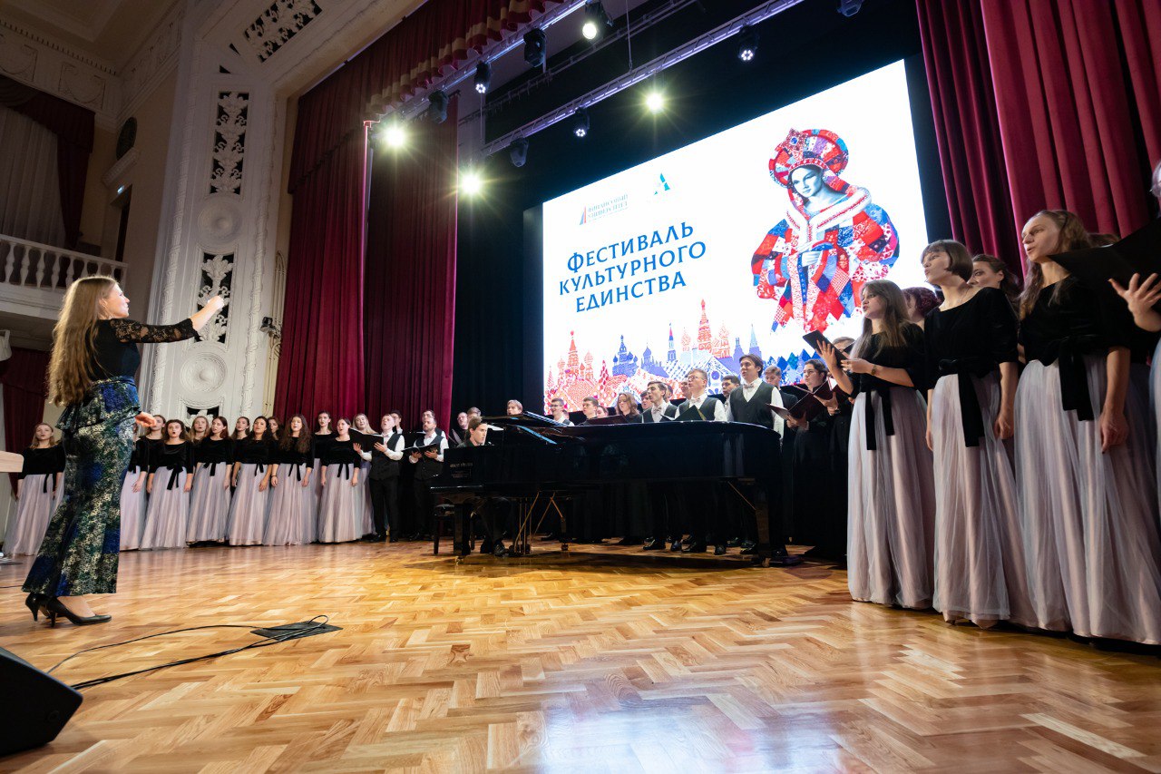 Торжественную атмосферу задало выступление оркестра Росгвардии, который встретил гостей праздника. А основная часть программы была насыщенной и разнообразной: зрители насладились виртуозным исполнением пианистов Академии музыки им. Гнесиных и Финуниверситета, а затем погрузились в звуки хора Сретенской духовной академии, выступившего вместе с хором Финуниверситета.