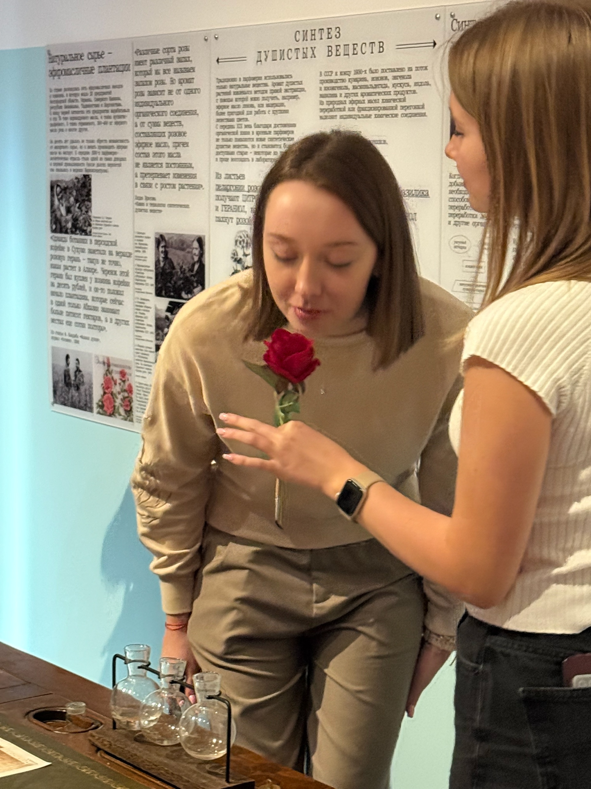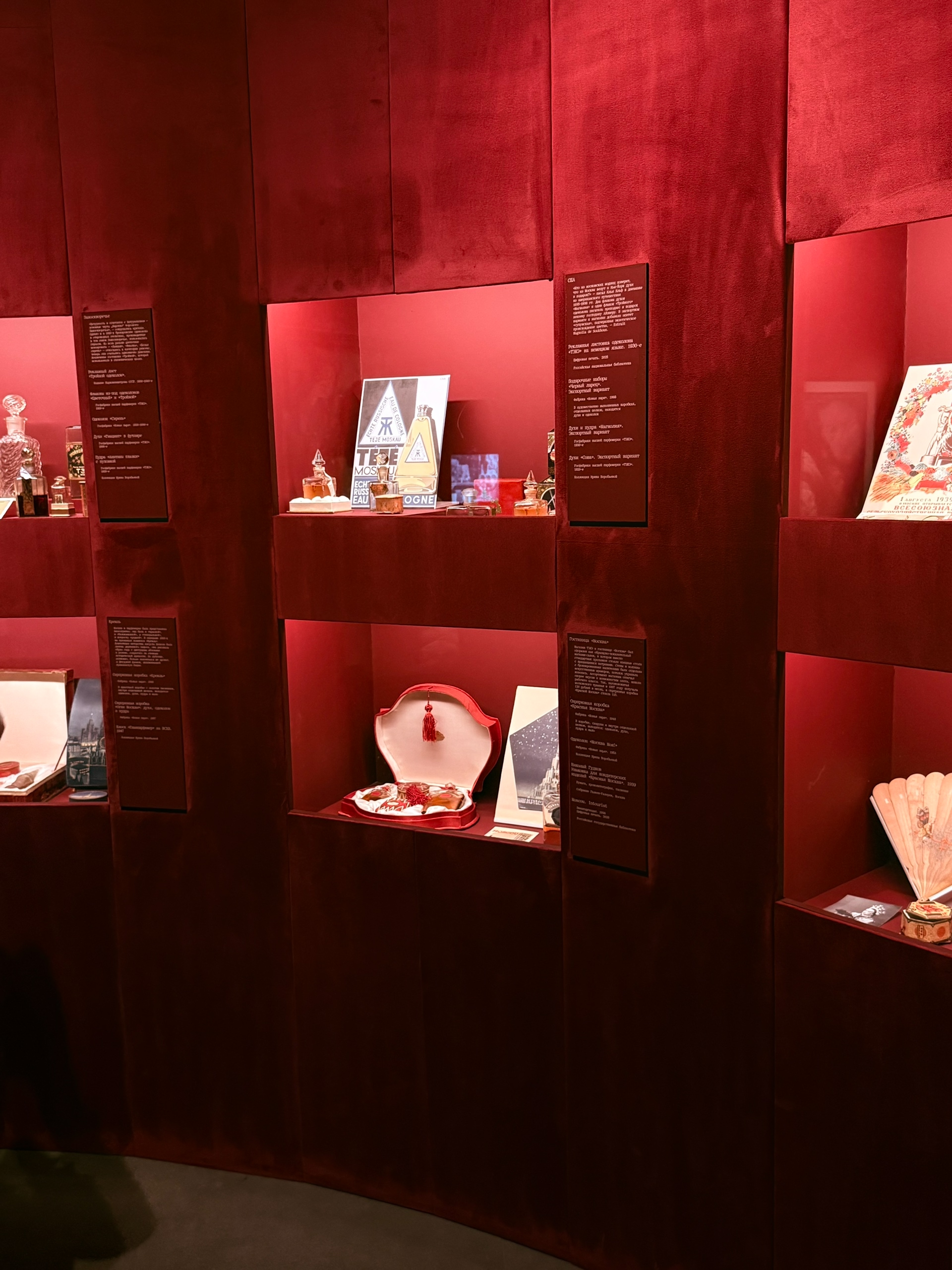 Экспозиция переносит в Москву 1920–30-х годов и показывает эпоху, когда формировался новый городской ритм и новые женские роли. Это не просто рассказ об истории, а целый мир, где картины и плакаты оживают благодаря запахам. Мы увидели женские образы той Москвы: строгие, решительные и вдохновляющие — студентки, работницы, модницы. Каждая картина сопровождалась своим ароматом: свежий хлеб и сирень в городских дворах, керосин фабричных труб, сладкие ноты легендарных духов.