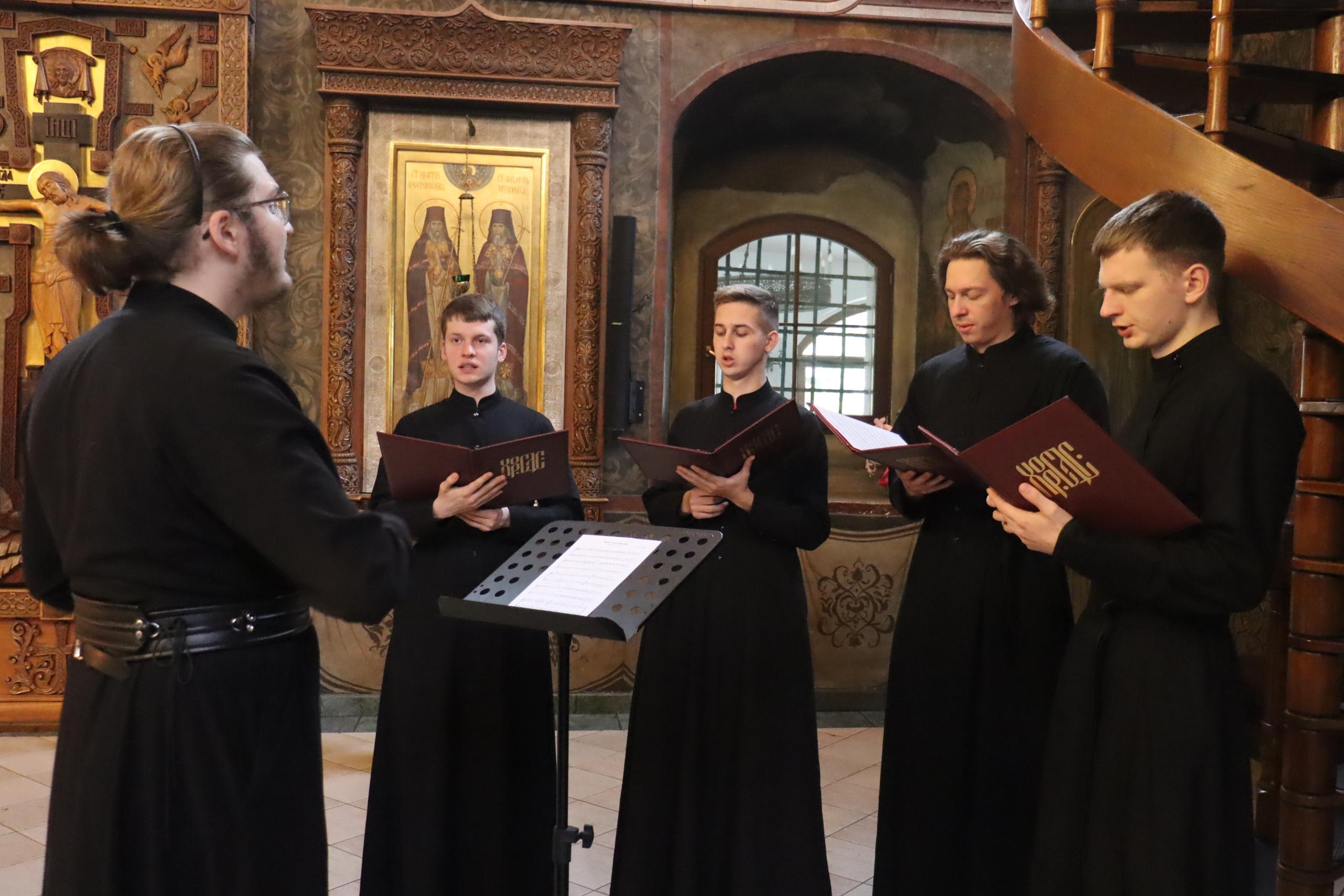 Приятным завершением программы стало выступление хора Сретенской духовной академии под управлением иеродиакона Алипия (Панфилова), подарившего гостям музыкальные произведения. В программе концерта прозвучали следующие произведения: «Ах ты, степь широкая», «Конь», «Кукушка» и «Этот мир».