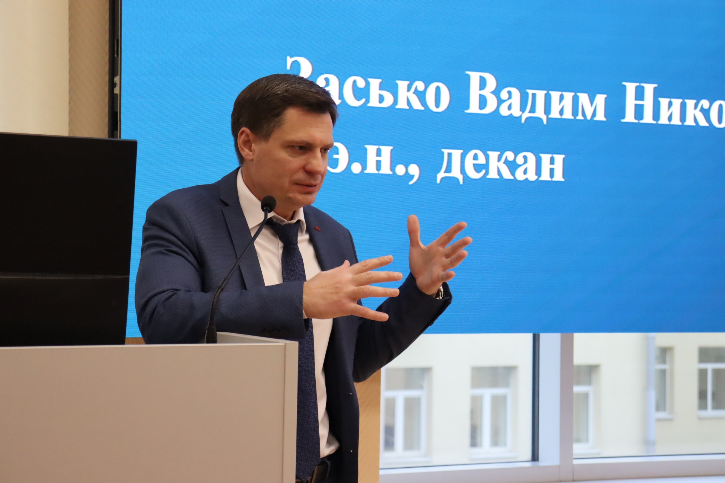Декан Вадим Засько тепло поприветствовал гостей и выразил уверенность в том, что связь между разными поколениями выпускников — это бесценный ресурс и основа для будущего развития.