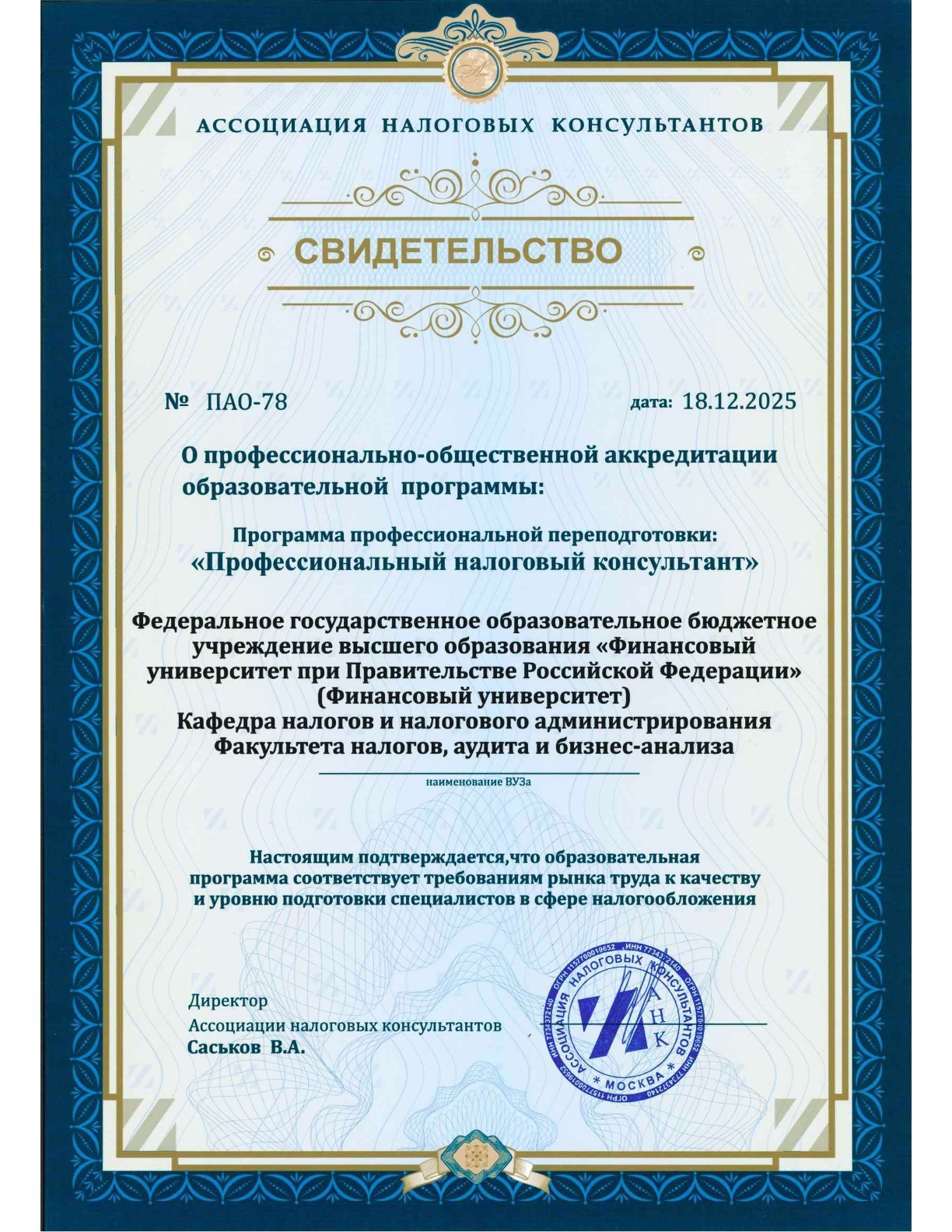 Те, кто обучается сейчас и наши будущие слушатели смогут вступить в члены Ассоциации и получить аттестат налогового консультанта.