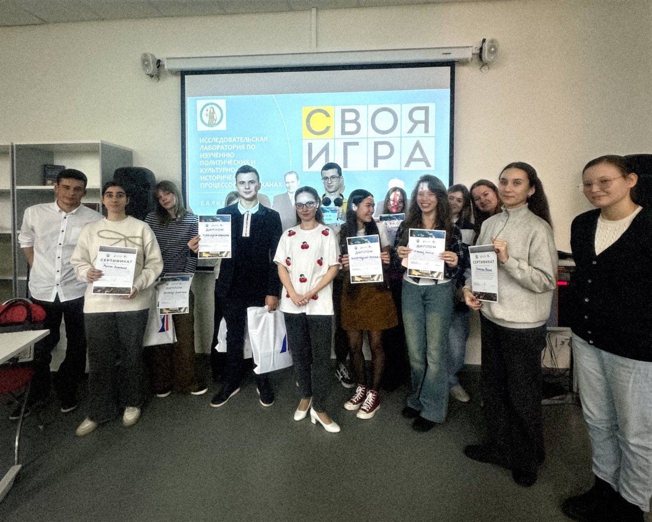 10 ноября 2025 года на Факультете социальных наук и массовых коммуникаций состоялось яркое событие — интеллектуальный марафон «Своя игра: Балканы», организованный Исследовательской лабораторией по изучению политических и культурно-исторических процессов на Балканах. Руководит студенческой лабораторией студентка 3 курса образовательной программы «Мировая политика» Каленицкая Виктория, научный руководитель – ассистент Кафедры политологии Волхонская Зинаида Ивановна.