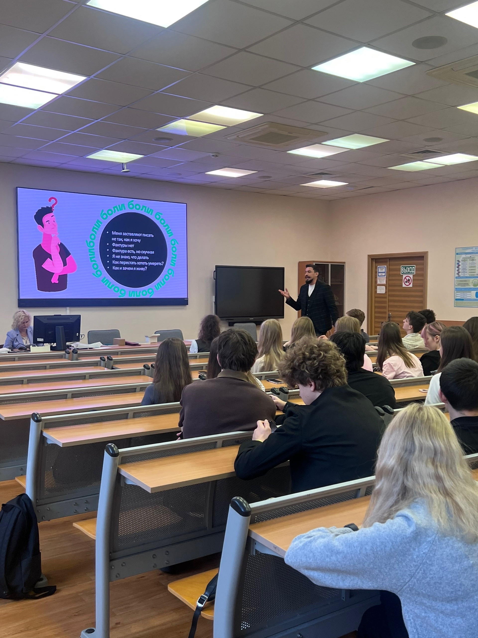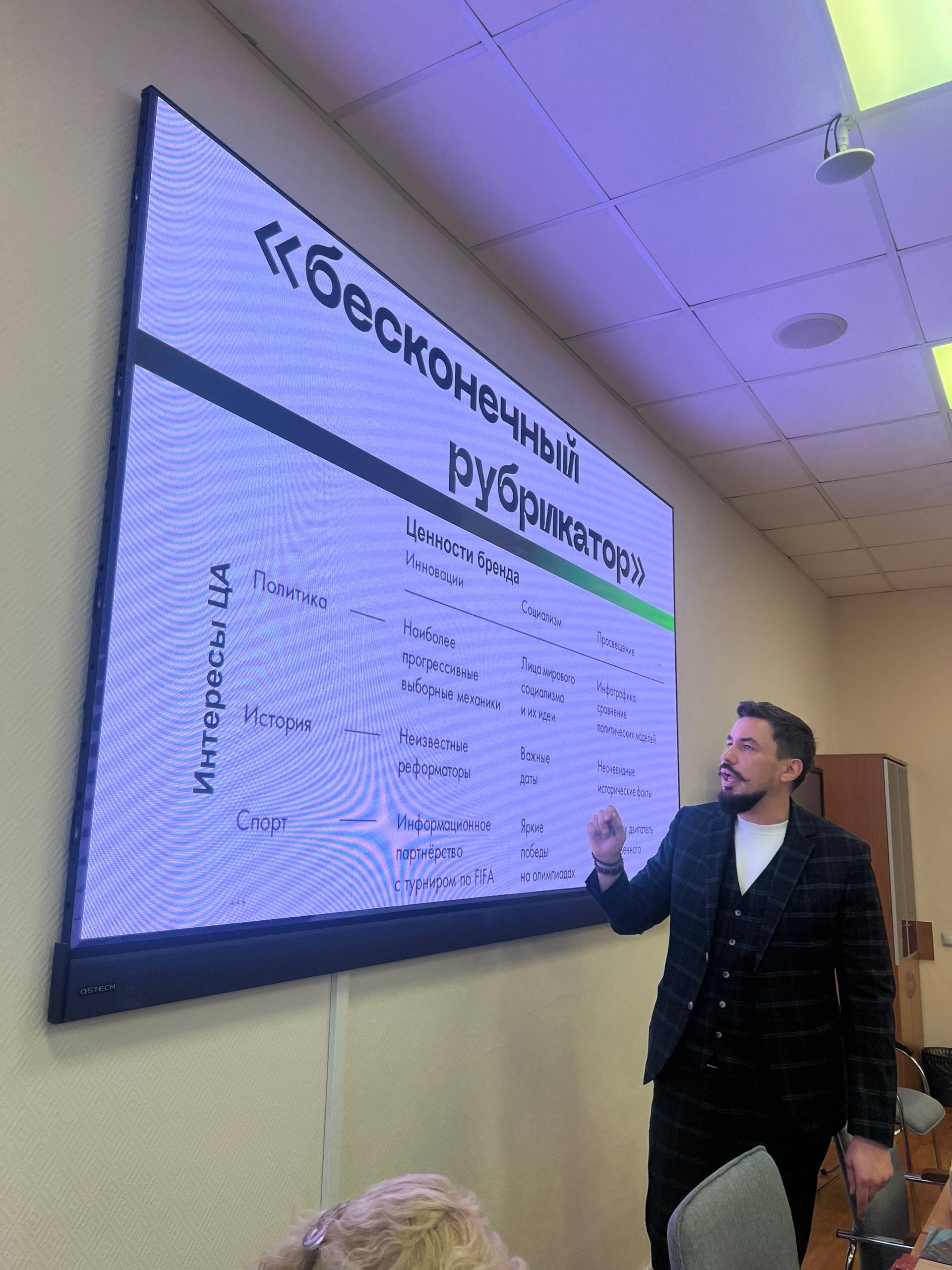 Для учеников был организован творческий мастер-класс от доцента Кафедры массовых коммуникаций и медиабизнеса Ивана Владимировича Еременко, где каждый смог составить персональный «Бесконечный рубрикатор» — практический инструмент для преодоления творческого кризиса.