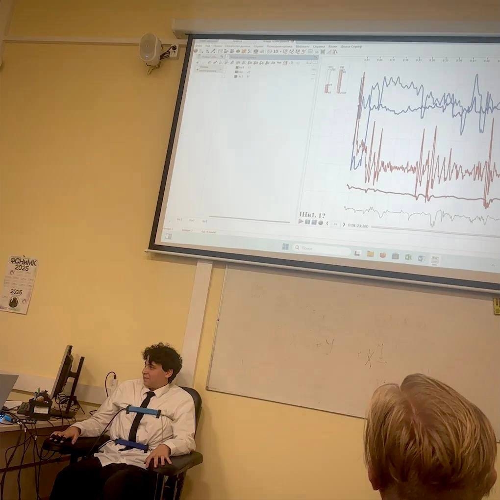 Вторая часть занятия была не менее захватывающей. Заведующая учебно-научной лабораторией экспериментальной психологии Кафедры психологии и развития человеческого капитала Светлана Михайловна Буянова познакомила гостей с функциями детектора лжи. Школьники с интересом наблюдали на экране за множеством линий, которые в реальном времени отображали ритм сердца, сужение сосудов и дыхание — как их собственное, так и коллег.