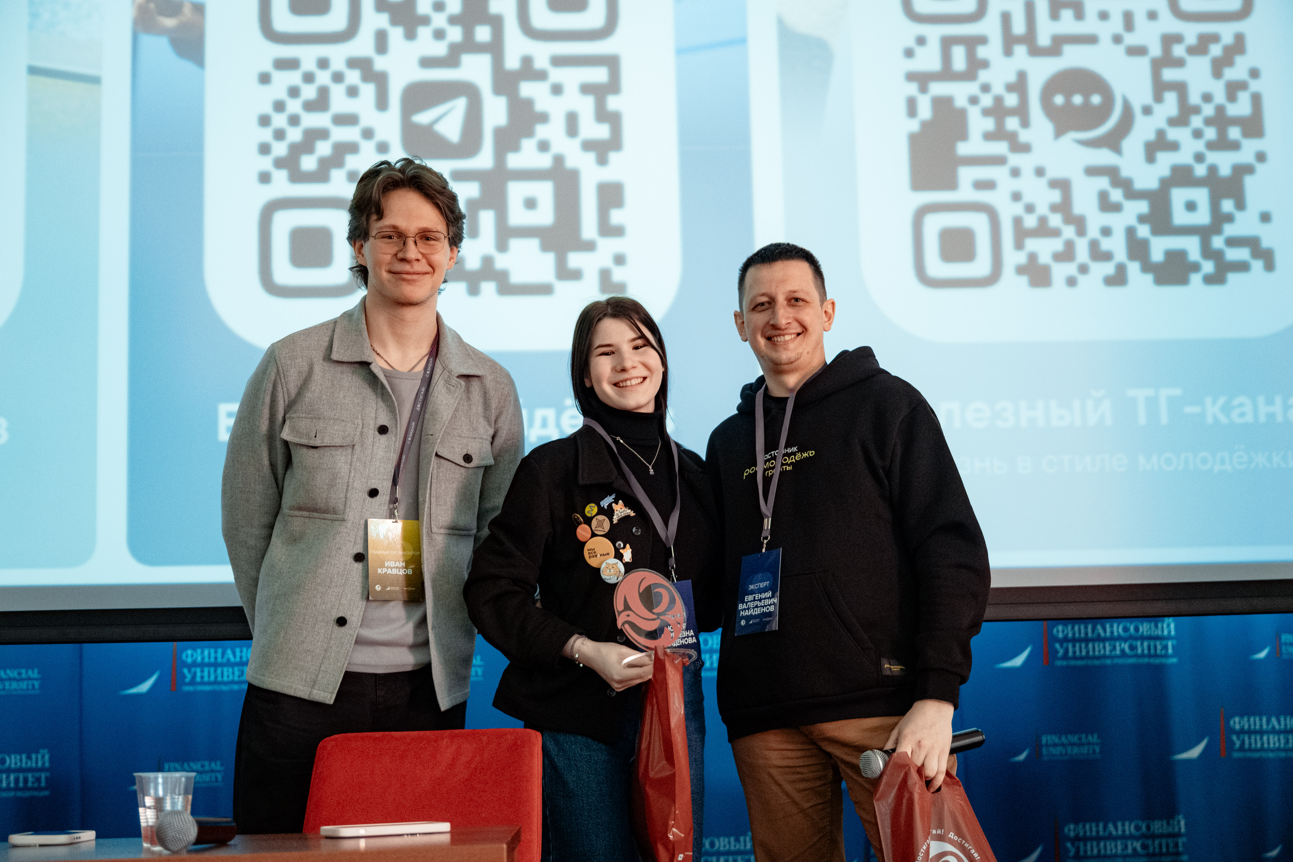 Состоялась встреча с приглашёнными гостями — экспертами-наставниками «Росмолодёжь. Гранты» Евгением Найдёновым и Юлией Найдёновой , исполнительным директором Эндаунмент фонда Финуниверситета Мариной Родионовой, управляющим партнёром Холдинга «Автогермес» Эдуардом Забрусковым.
