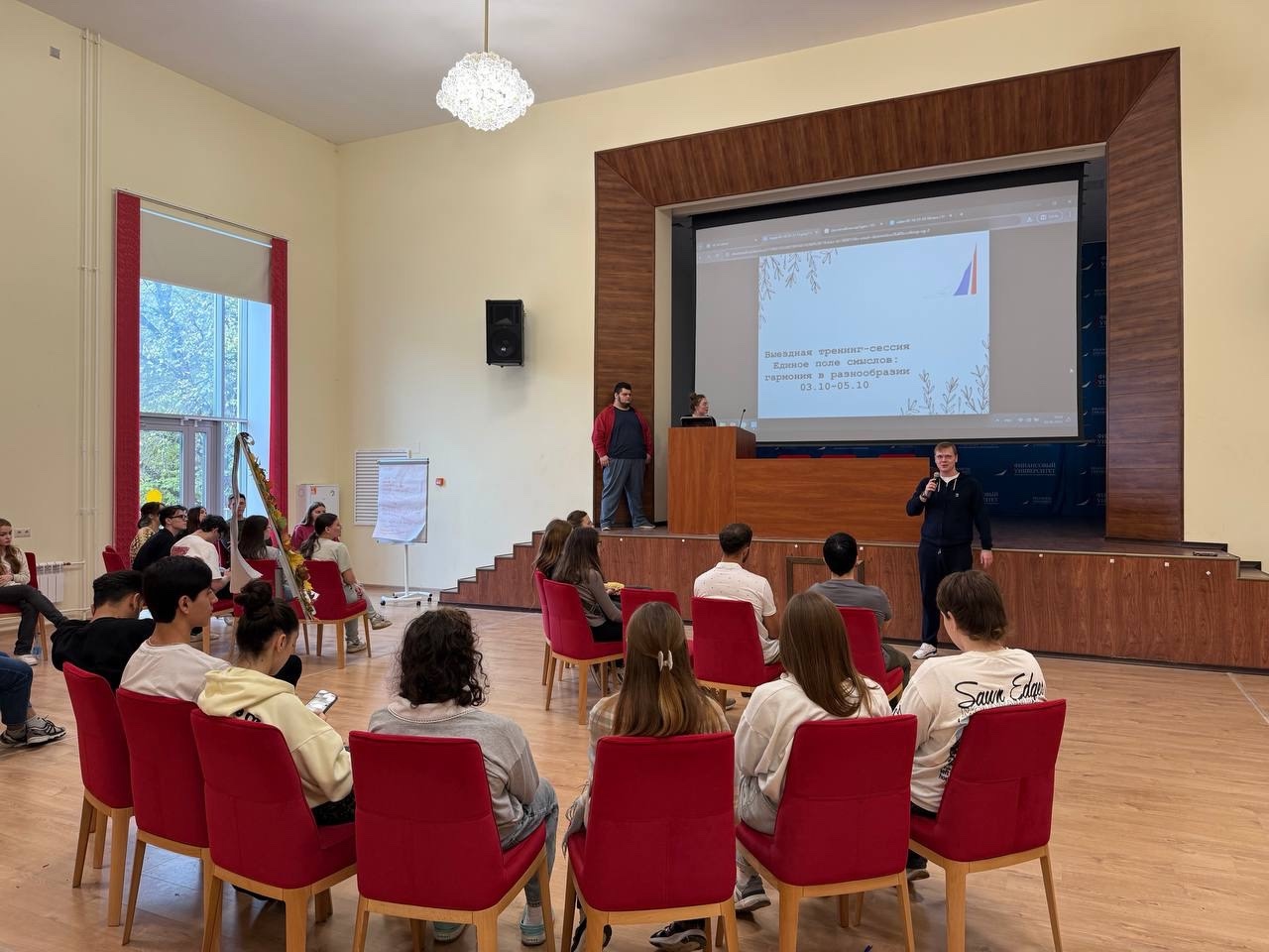 С 3 по 5 октября в учебно-оздоровительном комплексе «Лесное озеро» прошла тренинг-сессия «Единое поле смыслов: гармония в разнообразии» для иностранных и российских студентов Финансового университета. В число участников вошли также студенты Факультета социальных наук и массовых коммуникаций: Альгинова Софья, Каленицкая Виктория и Пономарева Валерия.