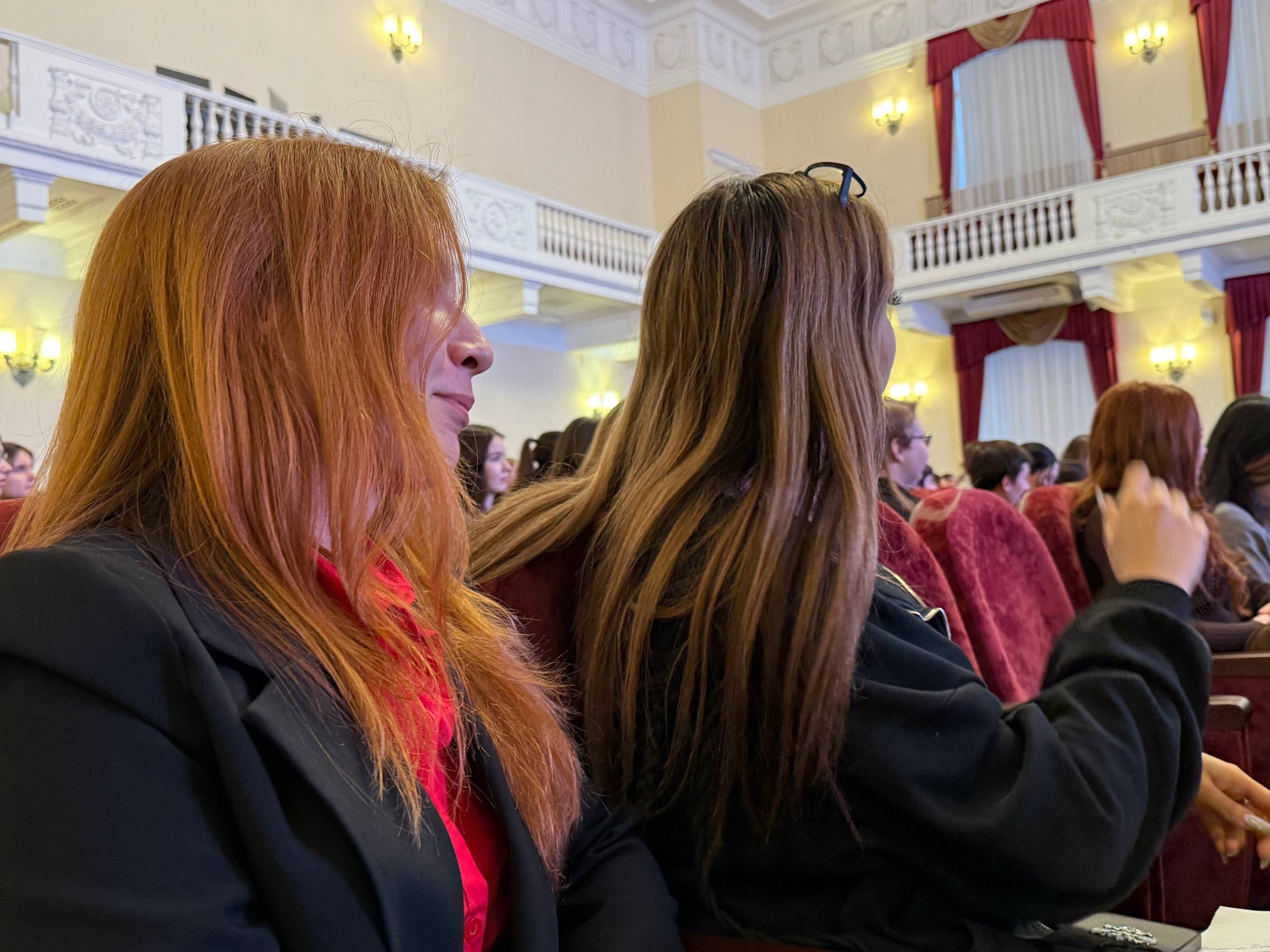 После просмотра у студентов и преподавателей университета была уникальная возможность пообщаться с главным героем фильма — Геннадием Николаевичем Зайцевым. Вместе с ним в открытом диалоге приняла участие делегация Фонда «Защитники Отечества». В состав делегации вошли: