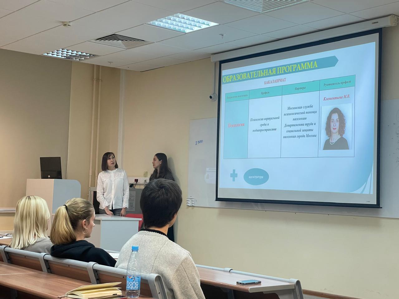 Заведующий лабораторией, старший преподаватель Кафедры психологии и развития человеческого капитала Буянова Светлана Михайловна совместно со старшим преподавателем Кафедры, выпускницей 2020 года Хутовой Миланой Аслановной представили программы бакалавриата «Психология» (профиль — «Психология виртуальной среды и медиапространства») и «Управление персоналом».