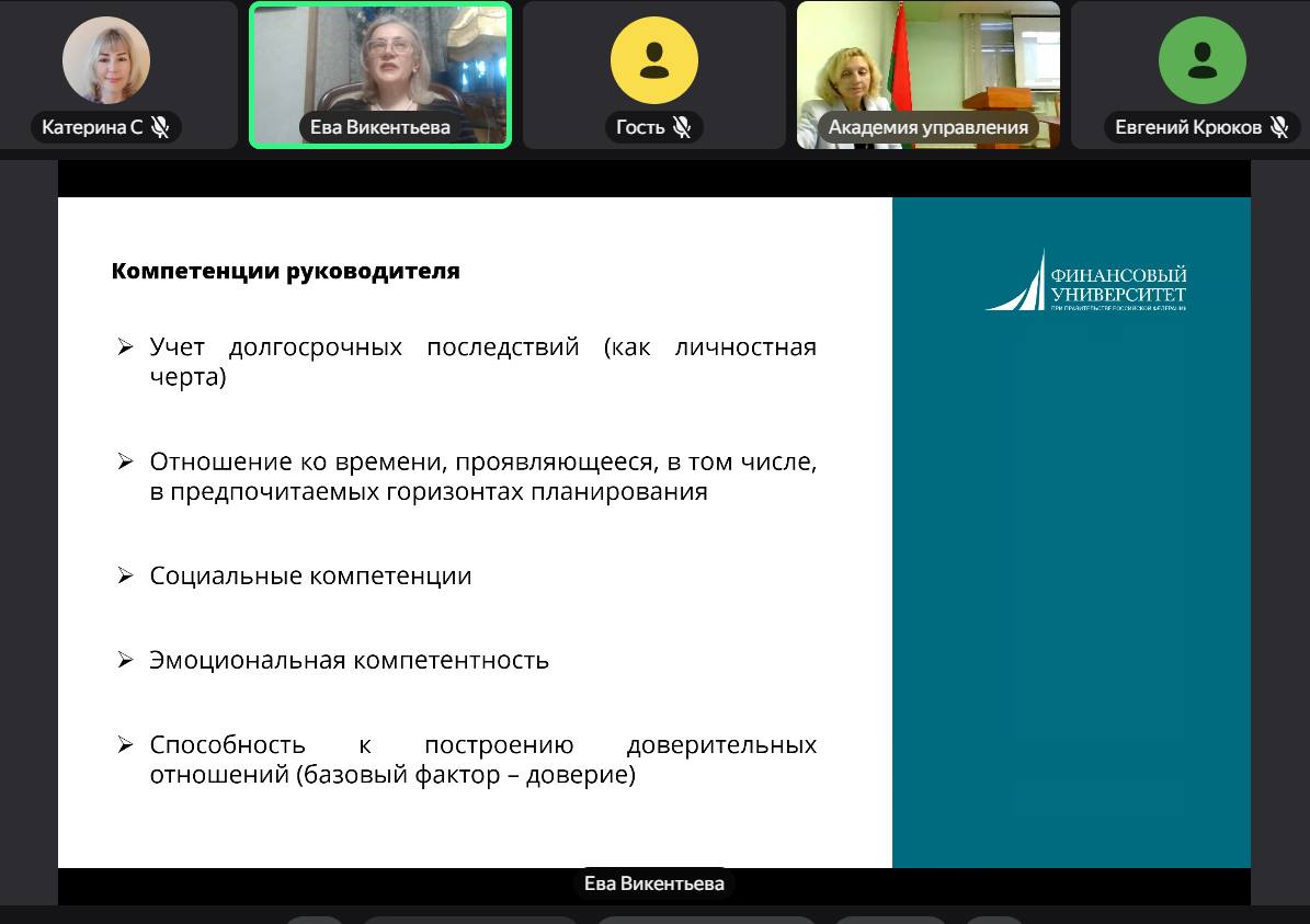 Во время лекции слушатели познакомились с современными подходами к оценке различных профессиональных компетенций руководителей.