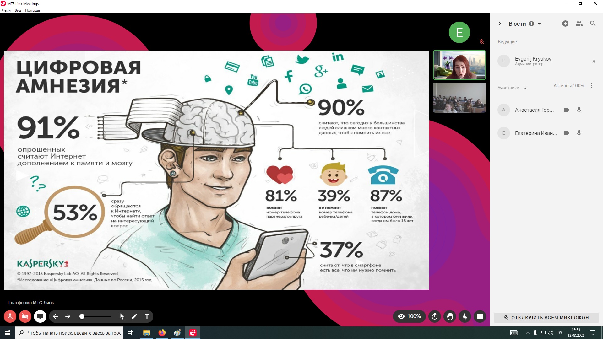 Студенты провели собственный анализ времени, проводимого в Интернете, оценку необходимости цифрового детокса, рассмотрели программы, способствующие концентрации внимания и контролю времени Интернете, а также узнали о возможностях проведения корпоративного цифрового детокса.