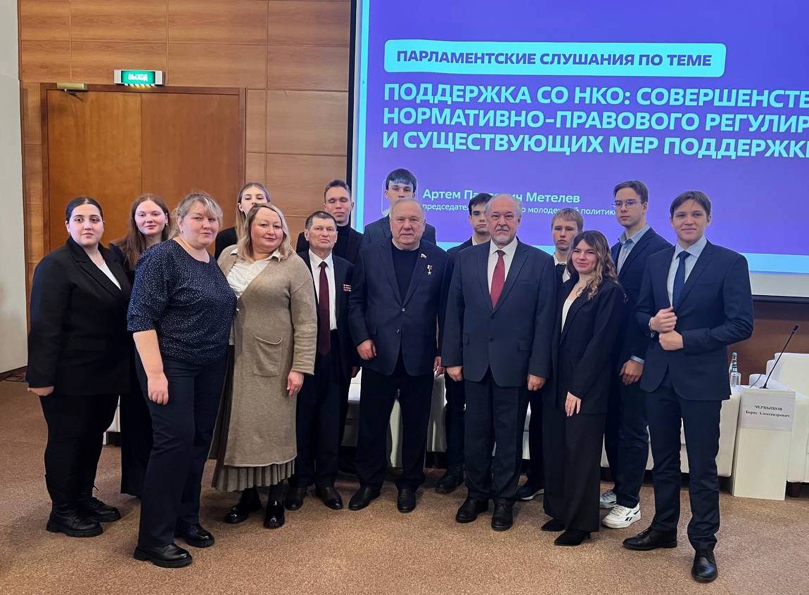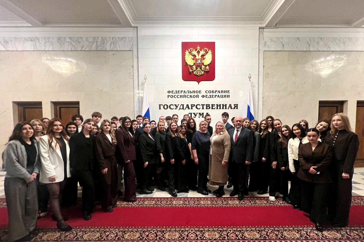 15 декабря 2025 года студенты первого курса Юридического факультета вместе со своими наставниками доцентами кафедры Международного и публичного права М.Ф. Гацко и О.В. Поповой приняли участие в парламентских слушаниях, состоявшихся в Государственной Думе, на которых обсуждались меры поддержки социально ориентированных некоммерческих организаций.