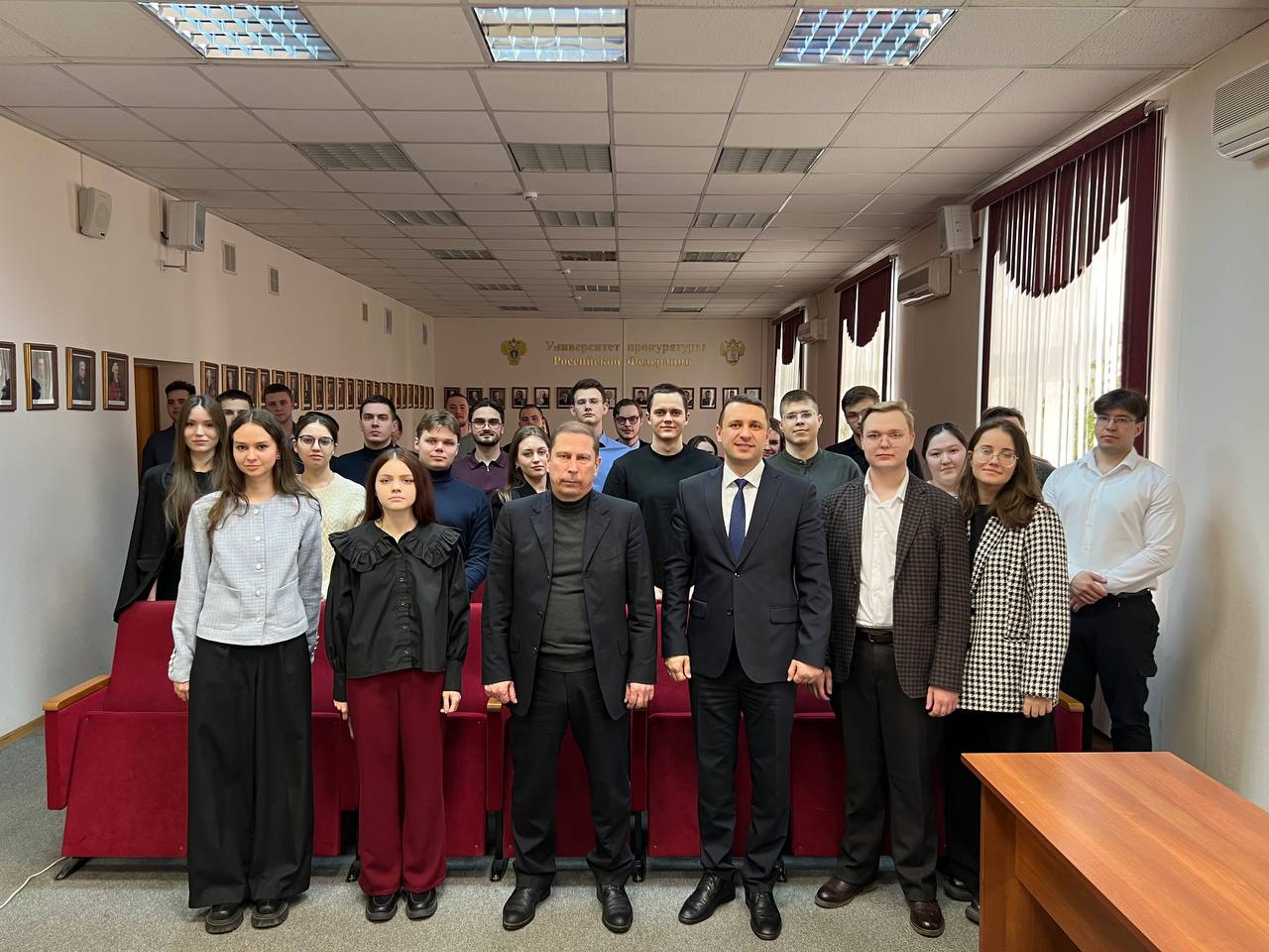 12.03.2026, реализуя сложившееся межвузовское взаимодействие, в Федеральном государственном казенном образовательном учреждении высшего образования Университете прокуратуры Российской Федерации состоялась встреча студентов 4 курса юридического факультета с профессором Кафедры международного и публичного права Юридического факультета, д.ю.н., юристом-практиком Титовым Алексеем Сергеевичем по теме — «Организация взаимодействия органов финансового контроля и органов прокуратуры». В рамках состоявшейся дискуссии студентами были заданы актуальные вопросы, посвященные теории и практики взаимодействия, с учетом современных требований, предъявляемых к органам государственного контроля (надзора) в интересах обеспечения экономической безопасности страны. Состоявшийся диалог для студентов Университета был интересный и познавательный.