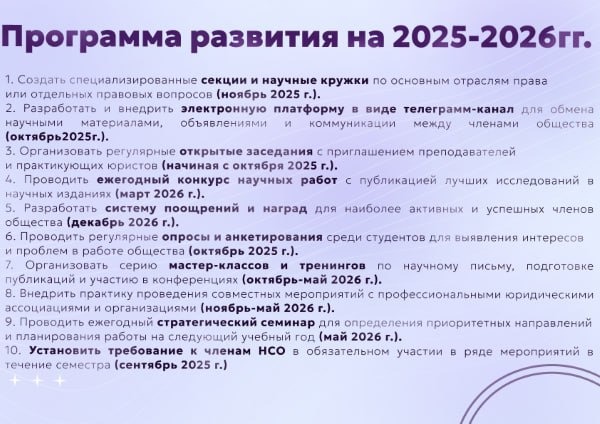 Основной целью деятельности НСО является создание условий для развития научного потенциала и творческой деятельности студентов, а также привлечение студентов к непосредственному участию в научно-исследовательской работе.